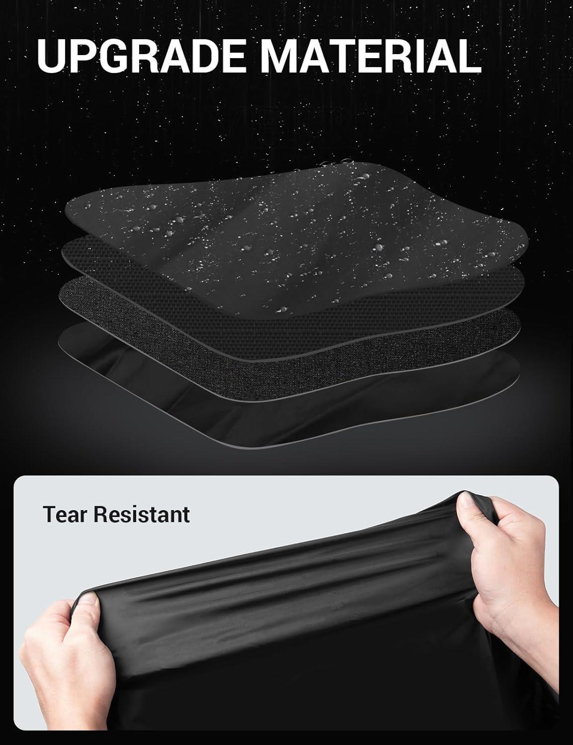 Upgrade Wind-Proof Design: The upgrade exterior covers uses a strong elasticized hem + double fixes buckles + four windproof straps to prevent the cover blow away by the heavy wind. Precise double-stitching technology makes the cover stronger than other covers. Will NOT be broken owing to the bad weather.