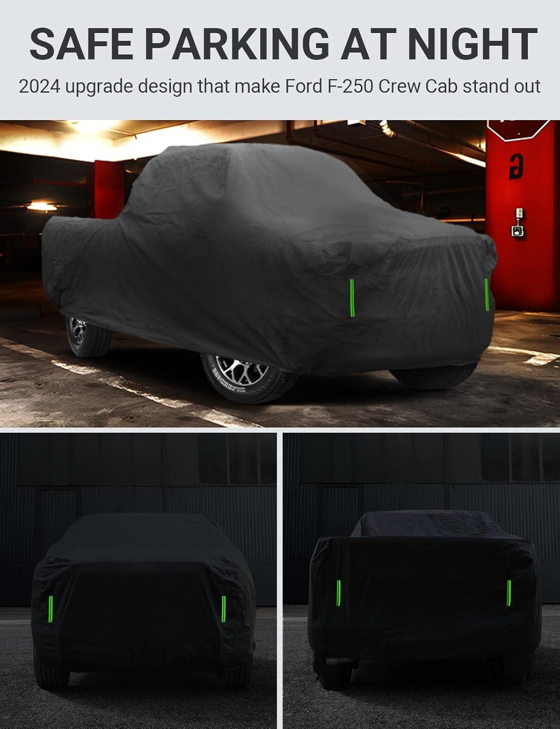 Safe and Convenient: The car cover for Ford F-250 is attached with reflection warning on the rear and front side, increasing safety for street parking at night. The full exterior covers easily can be done with one person! Attached FREE storage bag, allows you easily store your car tarp for a long-time and is easy to carry around.