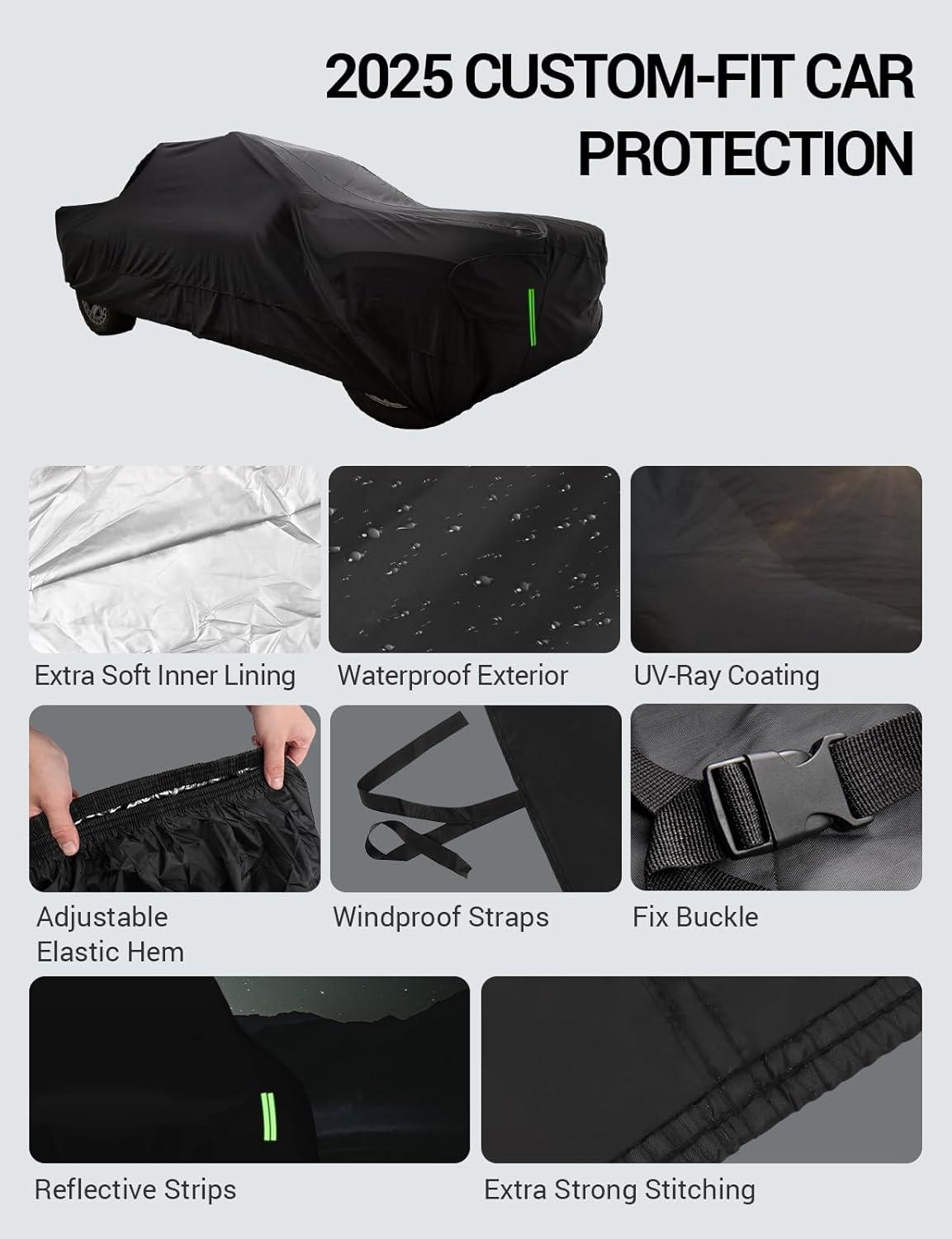 100% Waterproof: Proadsy Tacoma all-weather cover is crafted from premium material that is not only highly durable and wear-resistant. Non-fading, UV Rays, and 100% waterproof. Will NOT cause damage to your car!