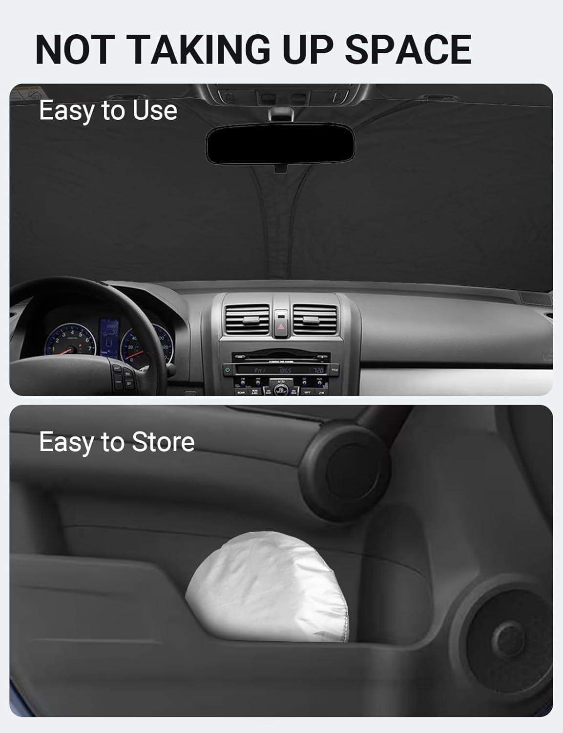 Easy to Use and Store: Unlike other products on the market, our windscreen sun visor is designed to be easy to use and store with its lightweight and collapsible material. The windscreen sunshade can be popped up and folded in seconds for everyday use and fits easily in your door pocket.