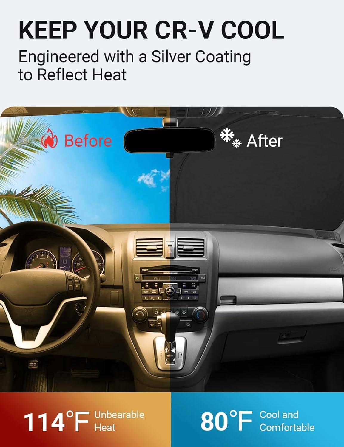 Proadsy 2025 Upgrade Windshield Sun Shade Custom Fit 2010-2016 Mercedes Benz E Class Foldable Front Sunshade Protector Sun Visor Blocks UV Rays Keep Car Cooler(2007-2011 Honda CRV)