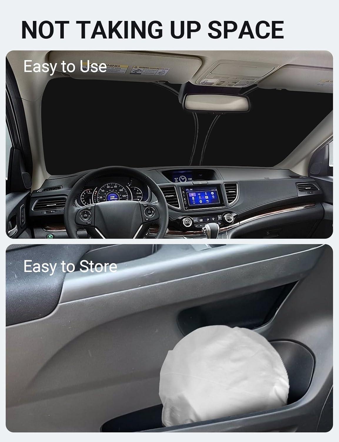 Easy to Use and Store: Unlike other products on the market, our windscreen sun visor is designed to be easy to use and store with its lightweight and collapsible material. The windscreen sunshade can be popped up and folded in seconds for everyday use and fits easily in your door pocket.