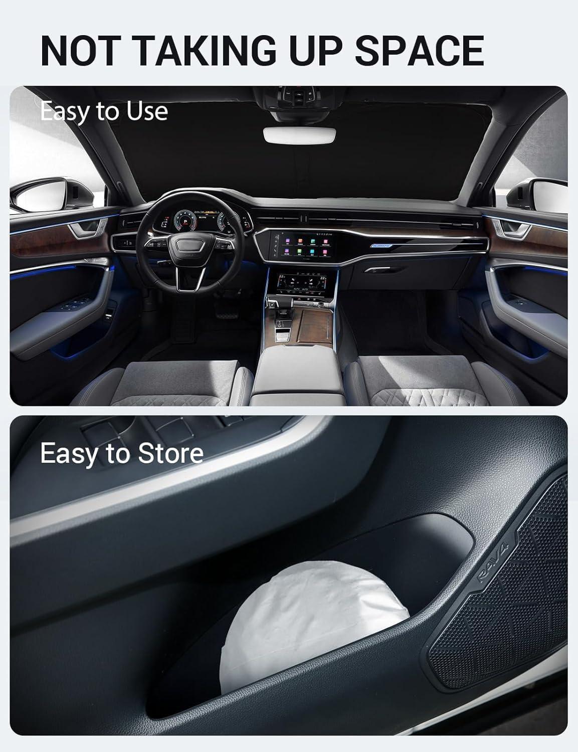 Easy to Use and Store: Unlike other products on the market, our windscreen sun visor is designed to be easy to use and store with its lightweight and collapsible material. The windscreen sunshade can be popped up and folded in seconds for everyday use and fits easily in your door pocket.