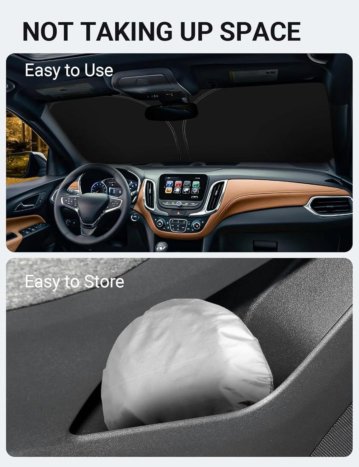 Easy to Use and Store: Unlike other products on the market, our windscreen sun visor is designed to be easy to use and store with its lightweight and collapsible material. The windscreen sunshade can be popped up and folded in seconds for everyday use and fits easily in your door pocket.