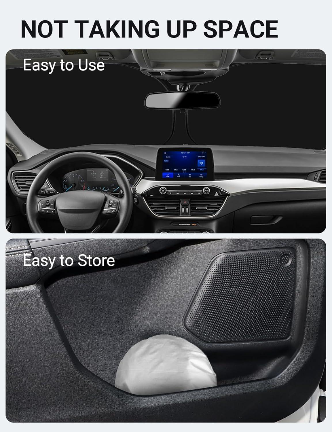 Easy to Use and Store: Unlike other products on the market, our windscreen sun visor is designed to be easy to use and store with its lightweight and collapsible material. The windscreen sunshade can be popped up and folded in seconds for everyday use and fits easily in your door pocket.