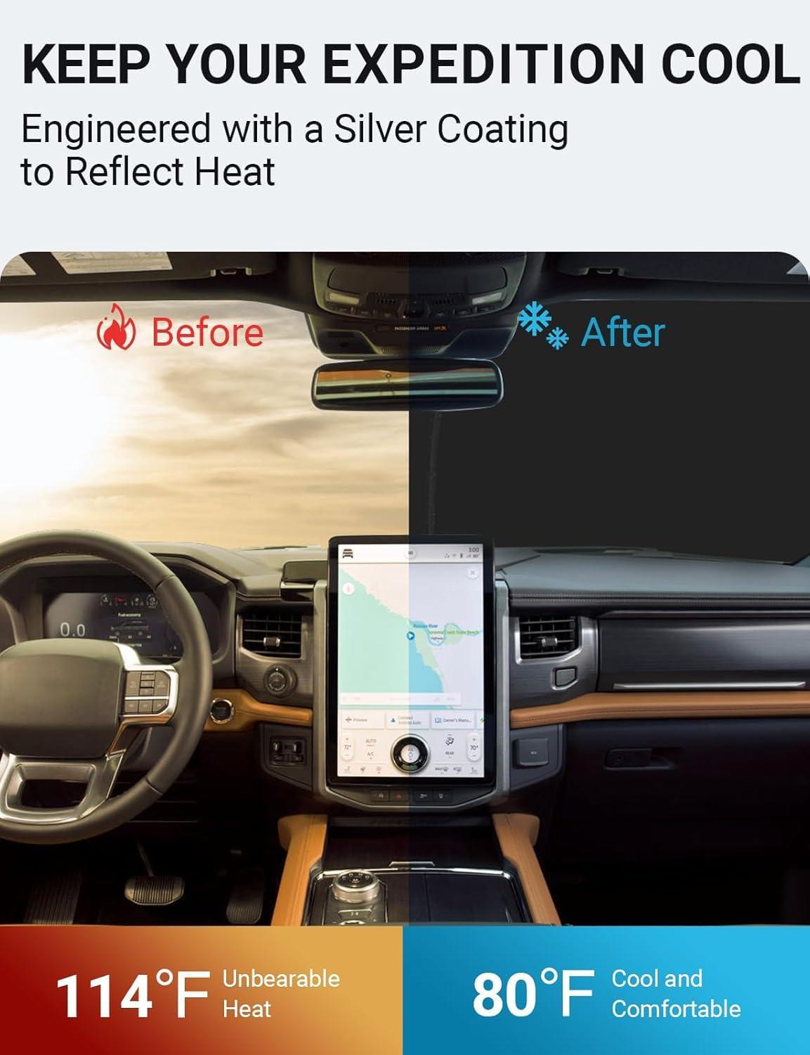 Proadsy 2025 Upgrade Windshield Sun Shade Custom Fit 2010-2016 Mercedes Benz E Class Foldable Front Sunshade Protector Sun Visor Blocks UV Rays Keep Car Cooler(Ford Expedition 2018-2025 2026)