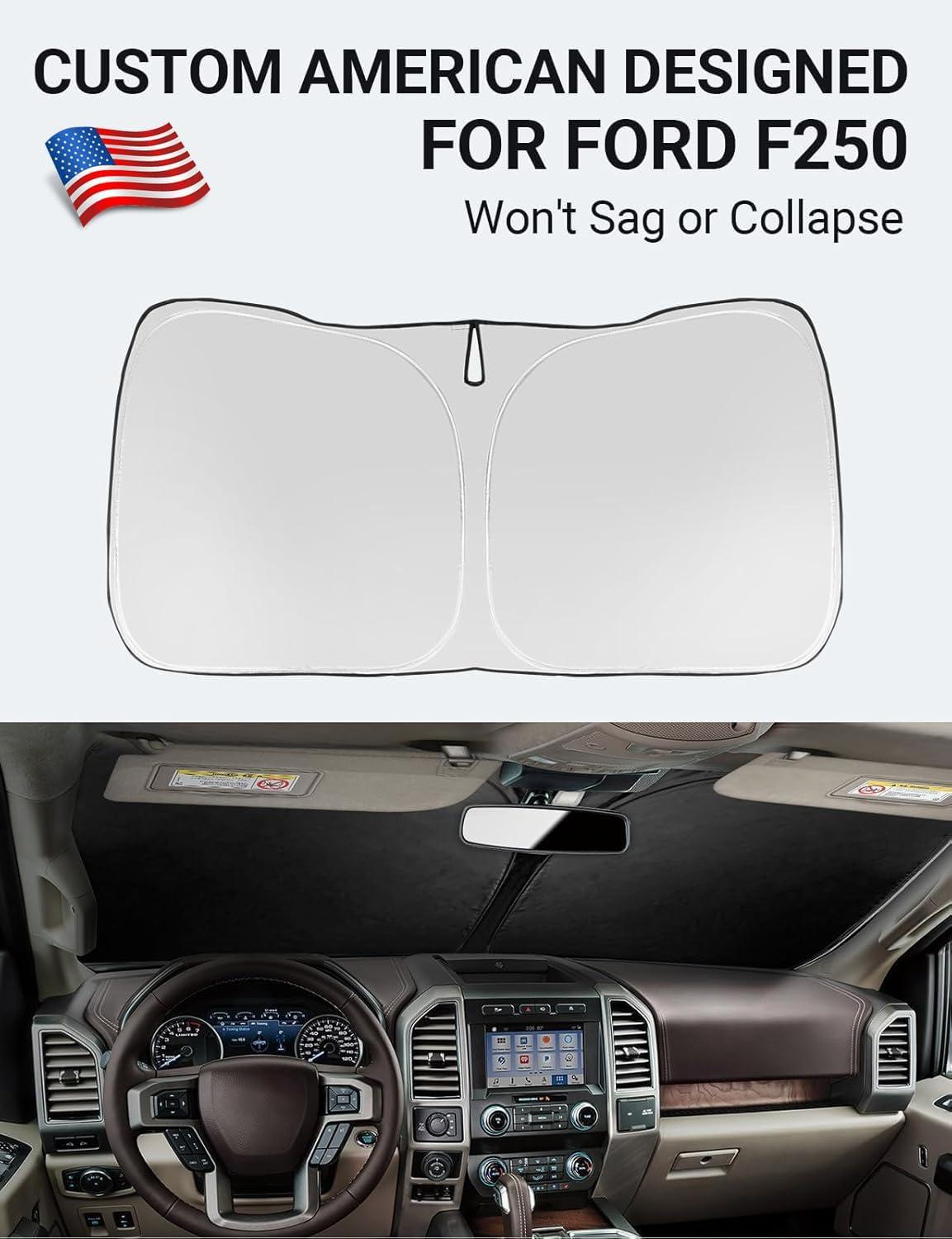 Proadsy 2025 Upgrade Windshield Sun Shade Custom Fit 2010-2016 Mercedes Benz E Class Foldable Front Sunshade Protector Sun Visor Blocks UV Rays Keep Car Cooler(Ford Super Duty 2017-2026)