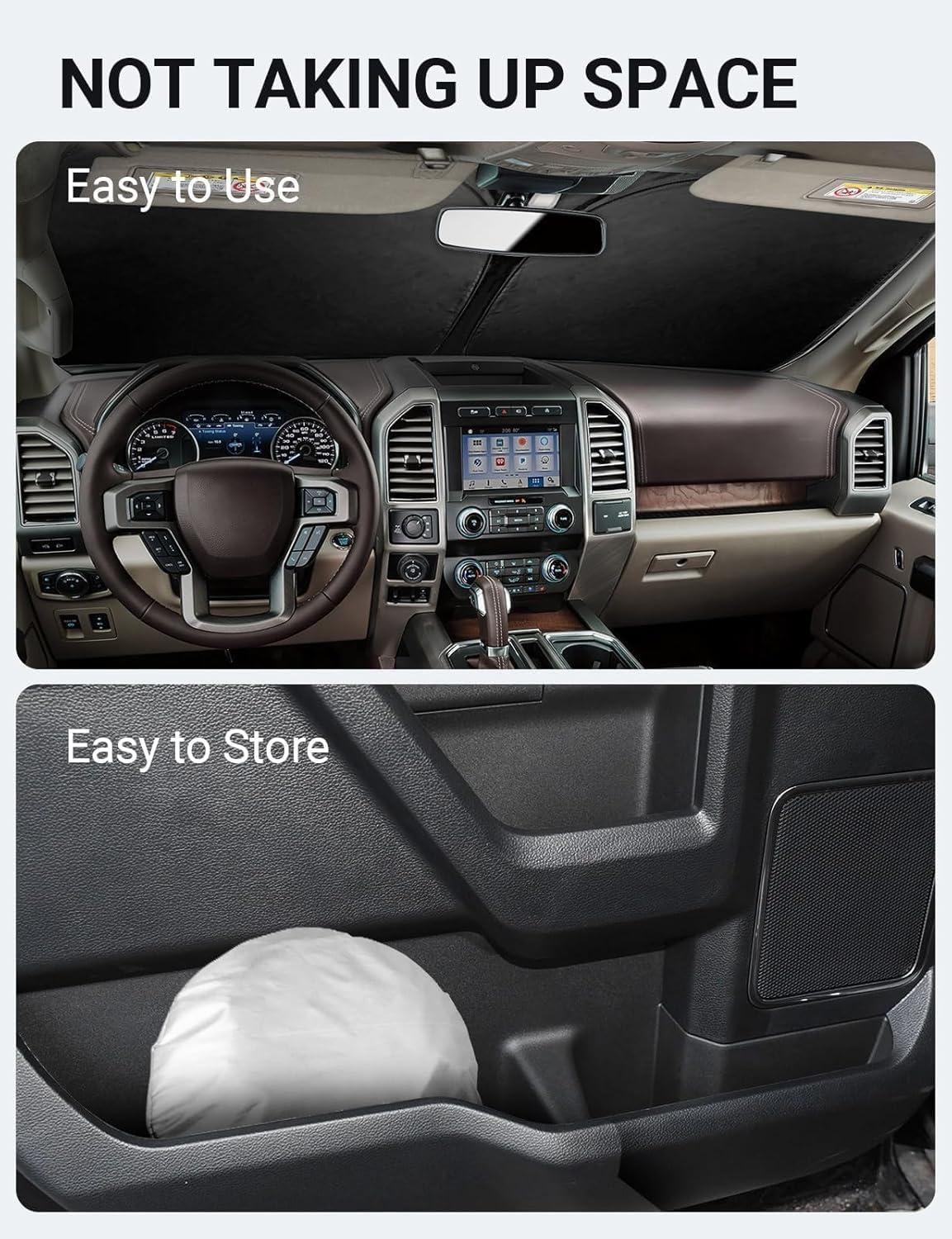 Easy to Use and Store: Unlike other products on the market, our windscreen sun visor is designed to be easy to use and store with its lightweight and collapsible material. The windscreen sunshade can be popped up and folded in seconds for everyday use and fits easily in your door pocket.
