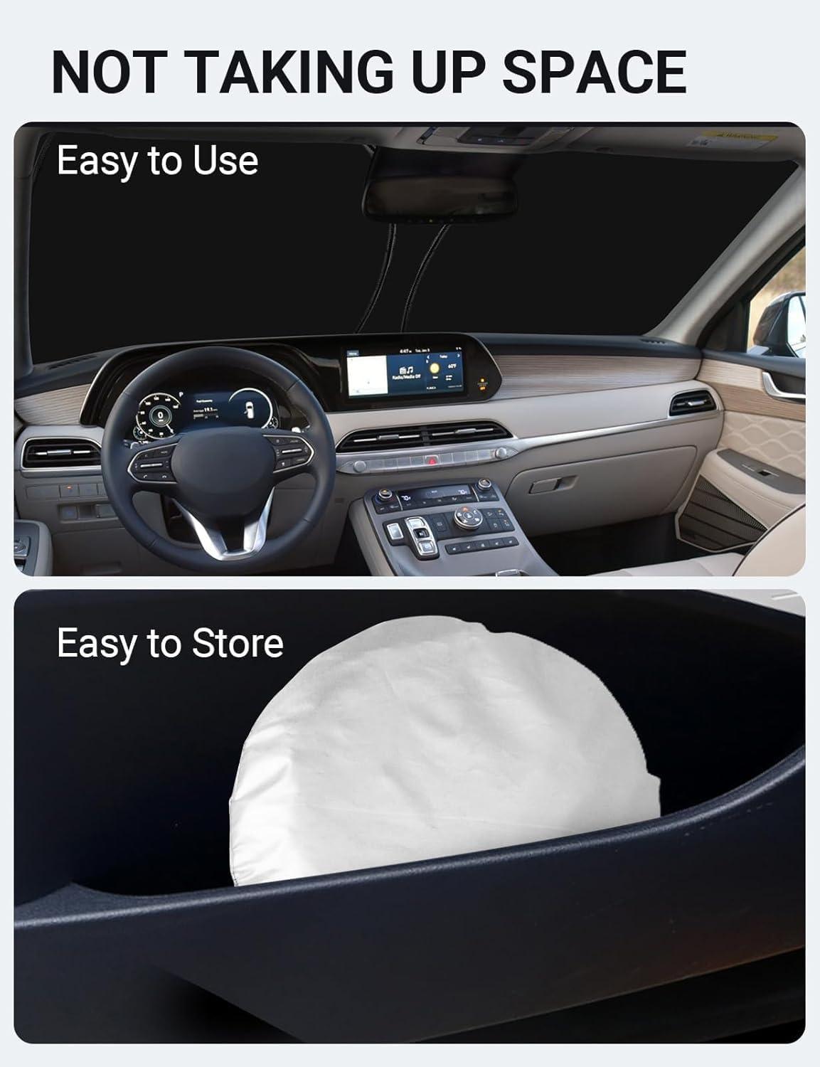 Easy to Use and Store: Unlike other products on the market, our windscreen sun visor is designed to be easy to use and store with its lightweight and collapsible material. The windscreen sunshade can be popped up and folded in seconds for everyday use and fits easily in your door pocket.