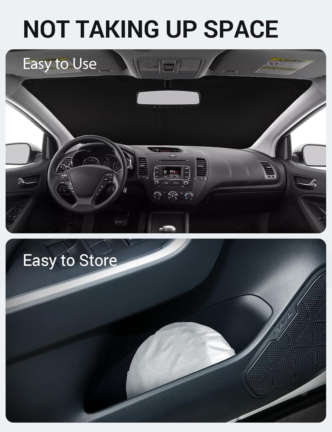 Easy to Use and Store: Unlike other products on the market, our windscreen sun visor is designed to be easy to use and store with its lightweight and collapsible material. The windscreen sunshade can be popped up and folded in seconds for everyday use and fits easily in your door pocket.