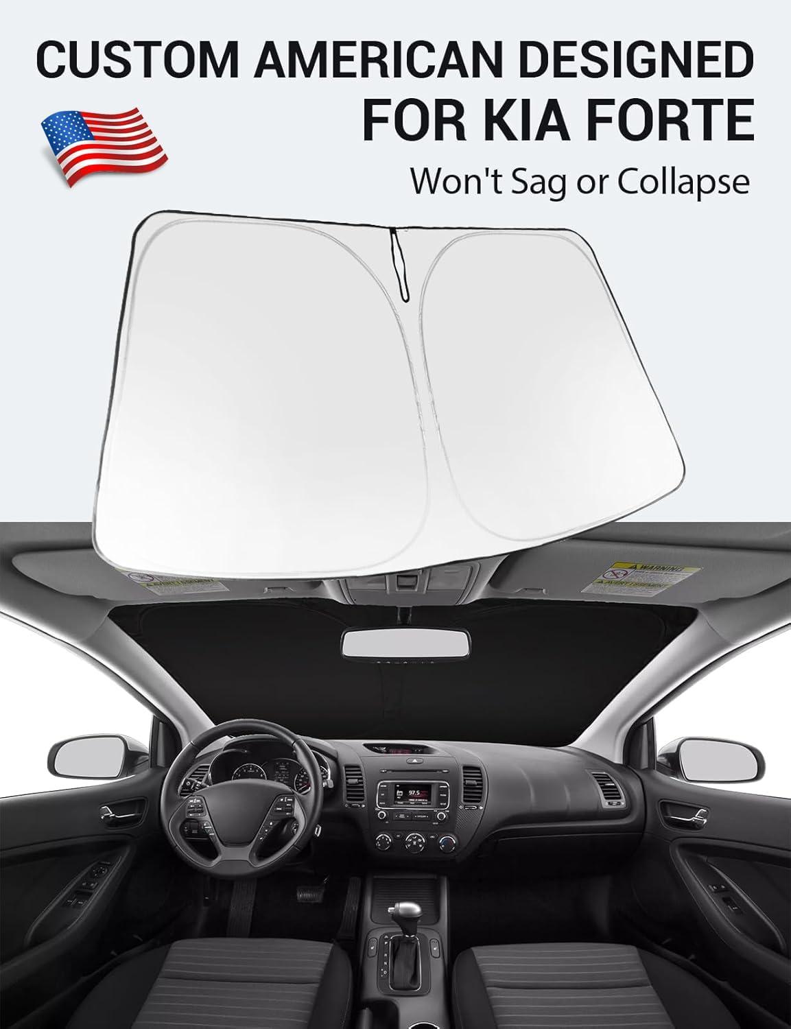 Proadsy 2025 Upgrade Windshield Sun Shade Custom Fit 2010-2016 Mercedes Benz E Class Foldable Front Sunshade Protector Sun Visor Blocks UV Rays Keep Car Cooler(Kia Forte 2014-2018)