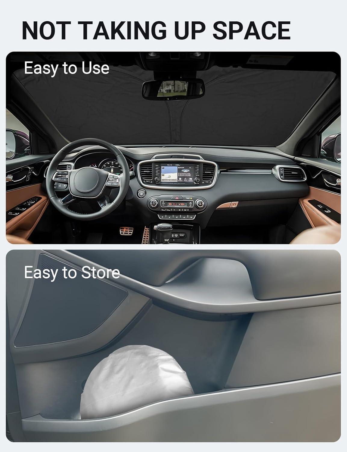 Easy to Use and Store: Unlike other products on the market, our windscreen sun visor is designed to be easy to use and store with its lightweight and collapsible material. The windscreen sunshade can be popped up and folded in seconds for everyday use and fits easily in your door pocket.