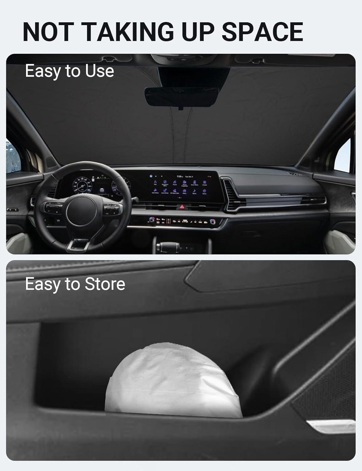 Easy to Use and Store: Unlike other products on the market, our windscreen sun visor is designed to be easy to use and store with its lightweight and collapsible material. The windscreen sunshade can be popped up and folded in seconds for everyday use and fits easily in your door pocket.