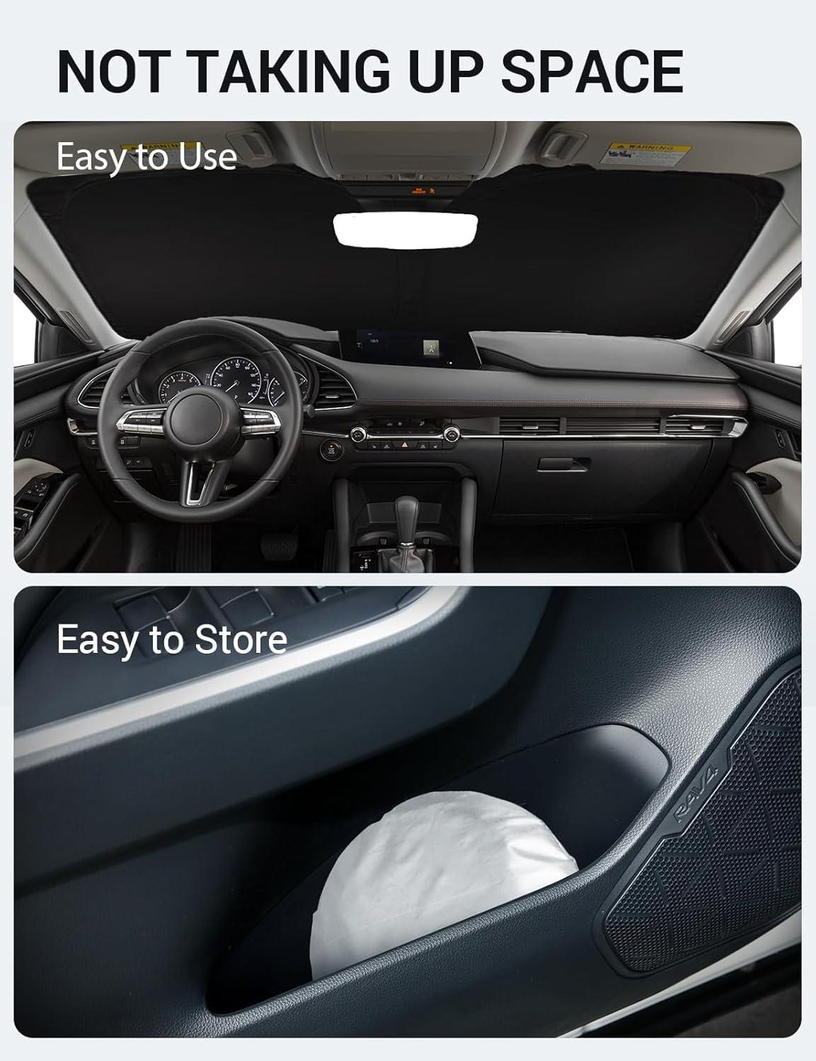 Easy to Use and Store: Unlike other products on the market, our windscreen sun visor is designed to be easy to use and store with its lightweight and collapsible material. The windscreen sunshade can be popped up and folded in seconds for everyday use and fits easily in your door pocket.