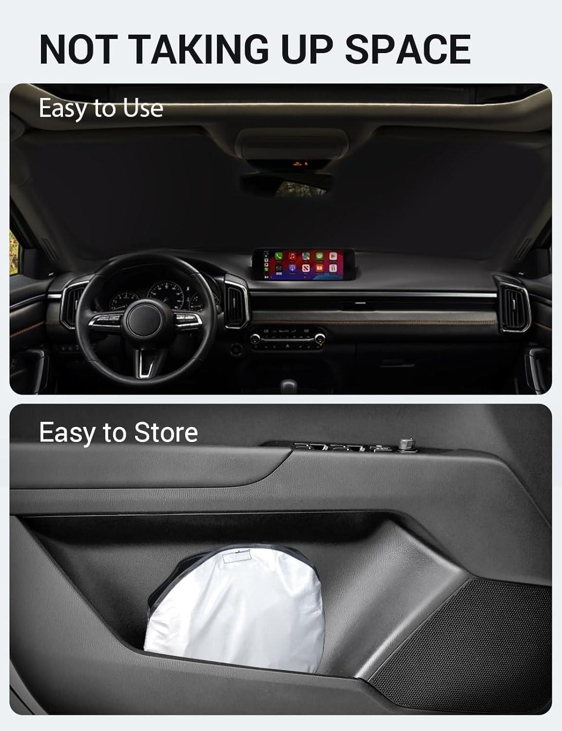 Easy to Use and Store: Unlike other products on the market, our windscreen sun visor is designed to be easy to use and store with its lightweight and collapsible material. The windscreen sunshade can be popped up and folded in seconds for everyday use and fits easily in your door pocket.