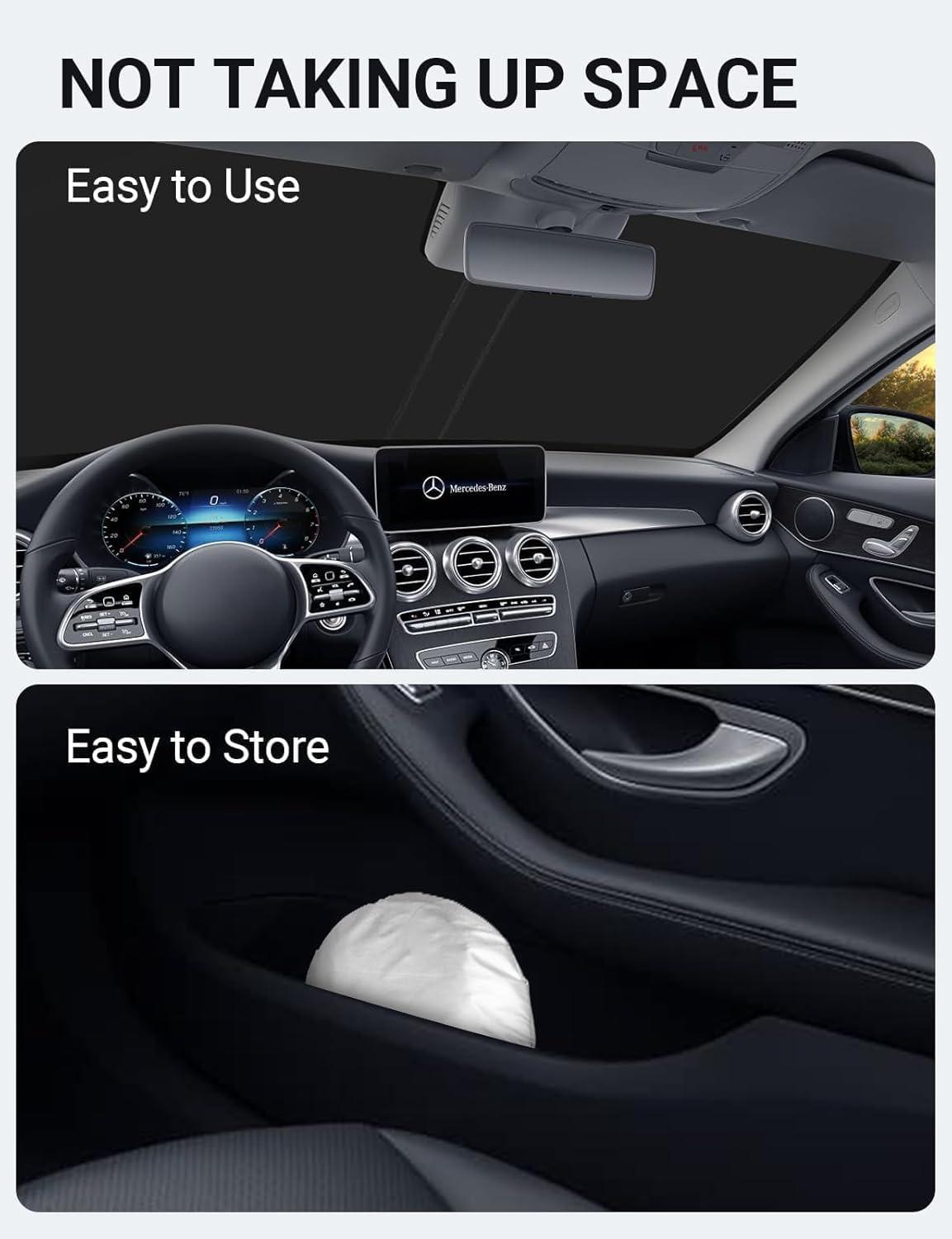 Easy to Use and Store: Unlike other products on the market, our windscreen sun visor is designed to be easy to use and store with its lightweight and collapsible material. The windscreen sunshade can be popped up and folded in seconds for everyday use and fits easily in your door pocket.