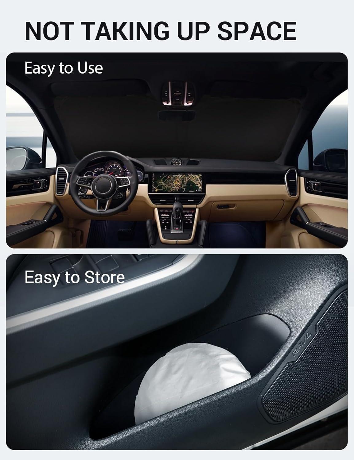 Easy to Use and Store: Unlike other products on the market, our windscreen sun visor is designed to be easy to use and store with its lightweight and collapsible material. The windscreen sunshade can be popped up and folded in seconds for everyday use and fits easily in your door pocket.