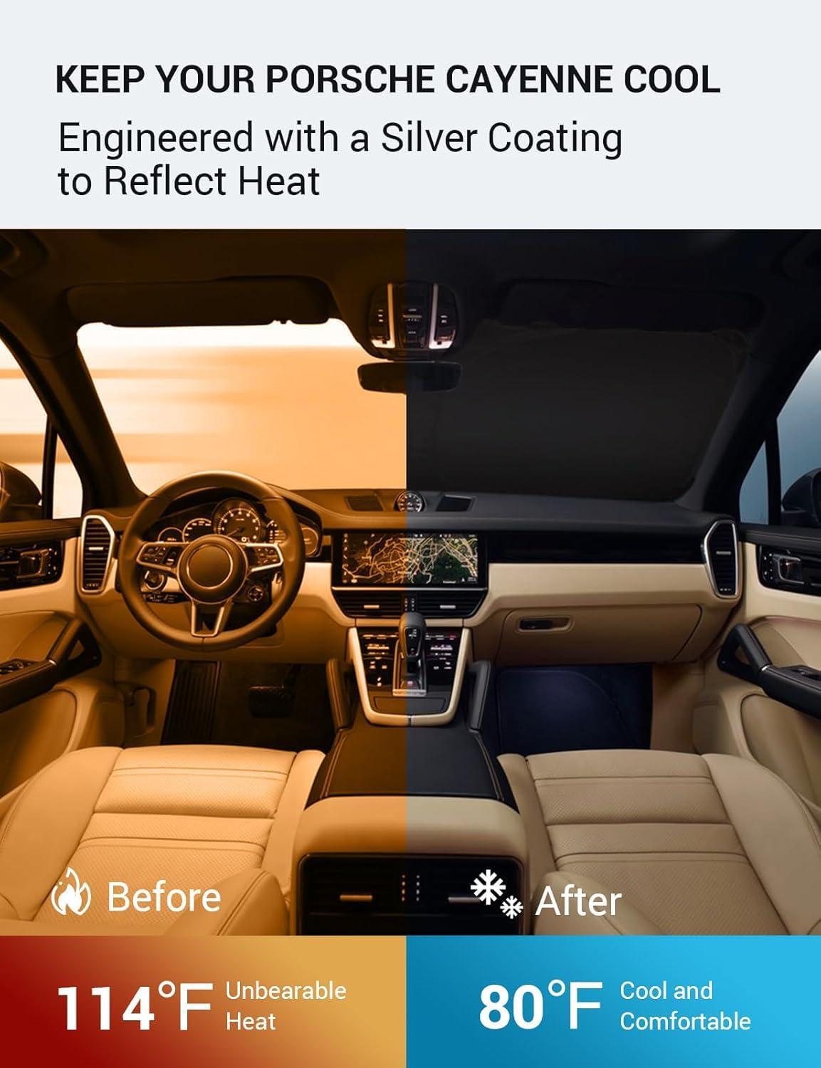 Proadsy 2025 Upgrade Windshield Sun Shade Custom Fit 2010-2016 Mercedes Benz E Class Foldable Front Sunshade Protector Sun Visor Blocks UV Rays Keep Car Cooler(Porsche Cayenne 2019–2026)