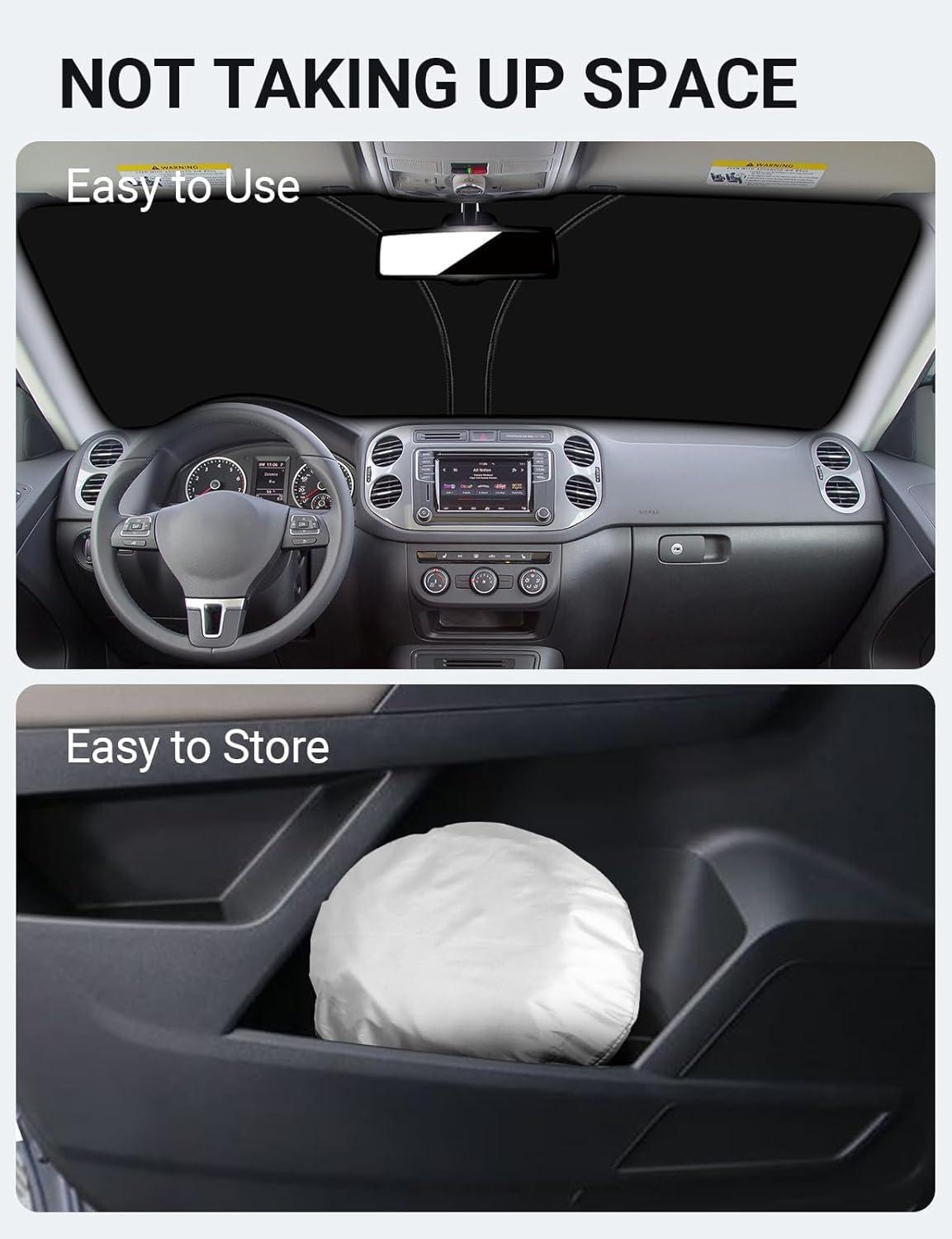 Easy to Use and Store: Unlike other products on the market, our windscreen sun visor is designed to be easy to use and store with its lightweight and collapsible material. The windscreen sunshade can be popped up and folded in seconds for everyday use and fits easily in your door pocket.