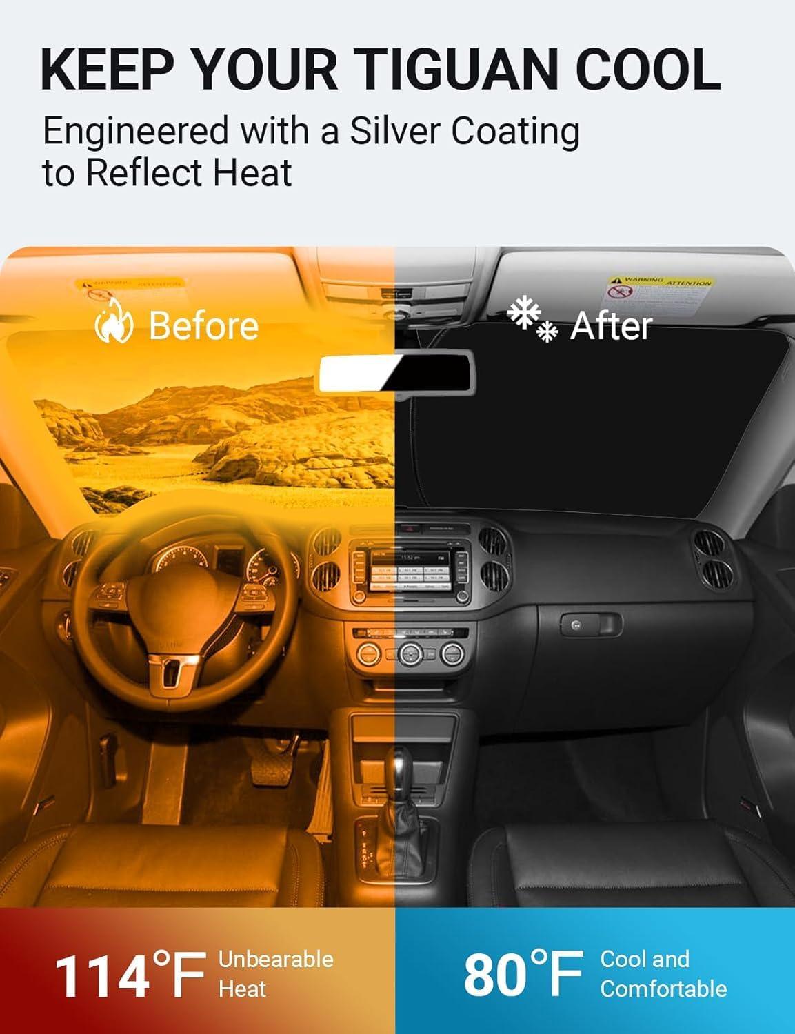 Proadsy 2025 Upgrade Windshield Sun Shade Custom Fit 2010-2016 Mercedes Benz E Class Foldable Front Sunshade Protector Sun Visor Blocks UV Rays Keep Car Cooler(Volkswagen Tiguan 2009-2017)
