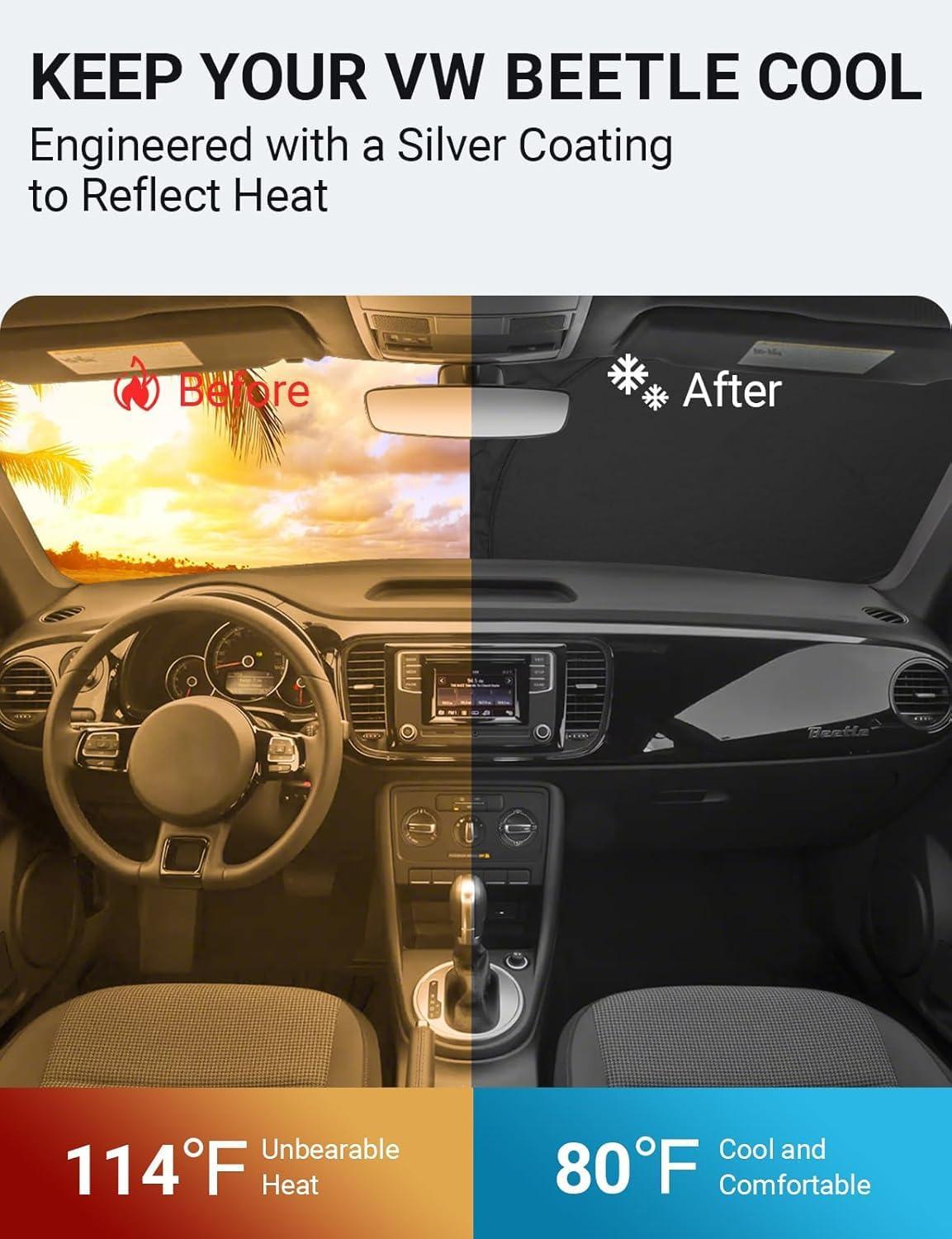 Proadsy 2025 Upgrade Windshield Sun Shade Custom Fit 2010-2016 Mercedes Benz E Class Foldable Front Sunshade Protector Sun Visor Blocks UV Rays Keep Car Cooler(Volkswagen VW Beetle 2012-2019)