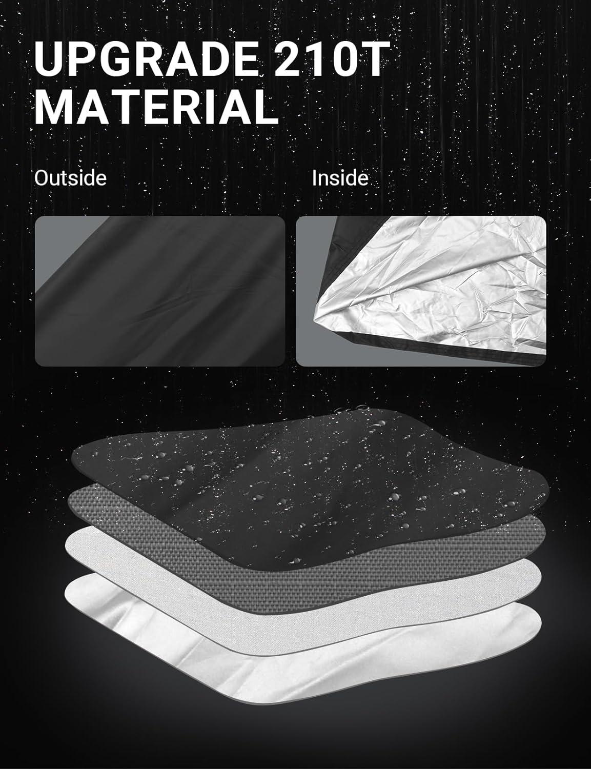 Upgrade Wind-Proof Design: The upgrade exterior covers uses a strong elasticized hem + double fixes buckles + four windproof straps to prevent the cover blow away by the heavy wind. Precise double-stitching technology makes the cover stronger than other covers. Will NOT be broken owing to the bad weather.