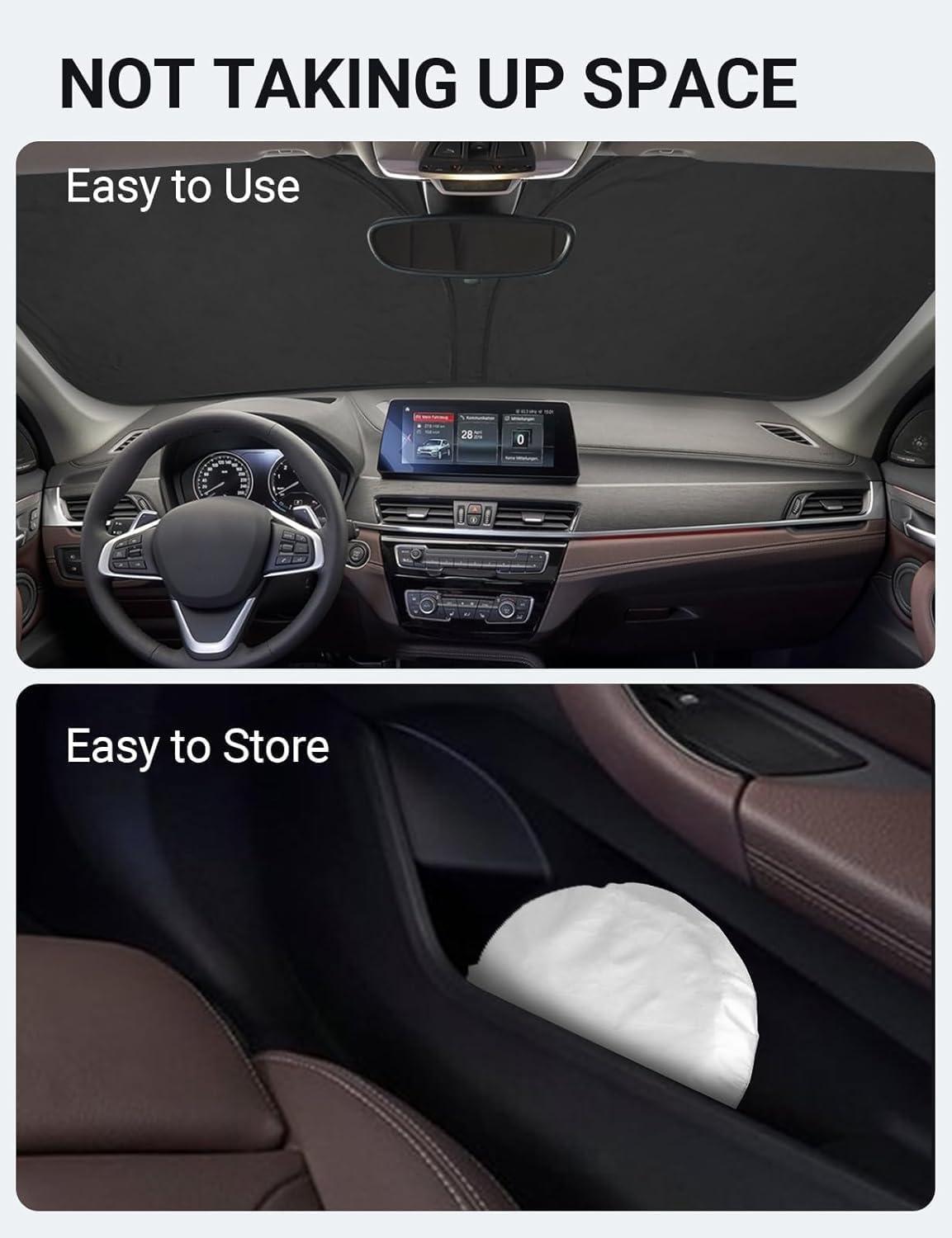 Easy to Use and Store: Unlike other products on the market, our windscreen sun visor is designed to be easy to use and store with its lightweight and collapsible material. The windscreen sunshade can be popped up and folded in seconds for everyday use and fits easily in your door pocket.