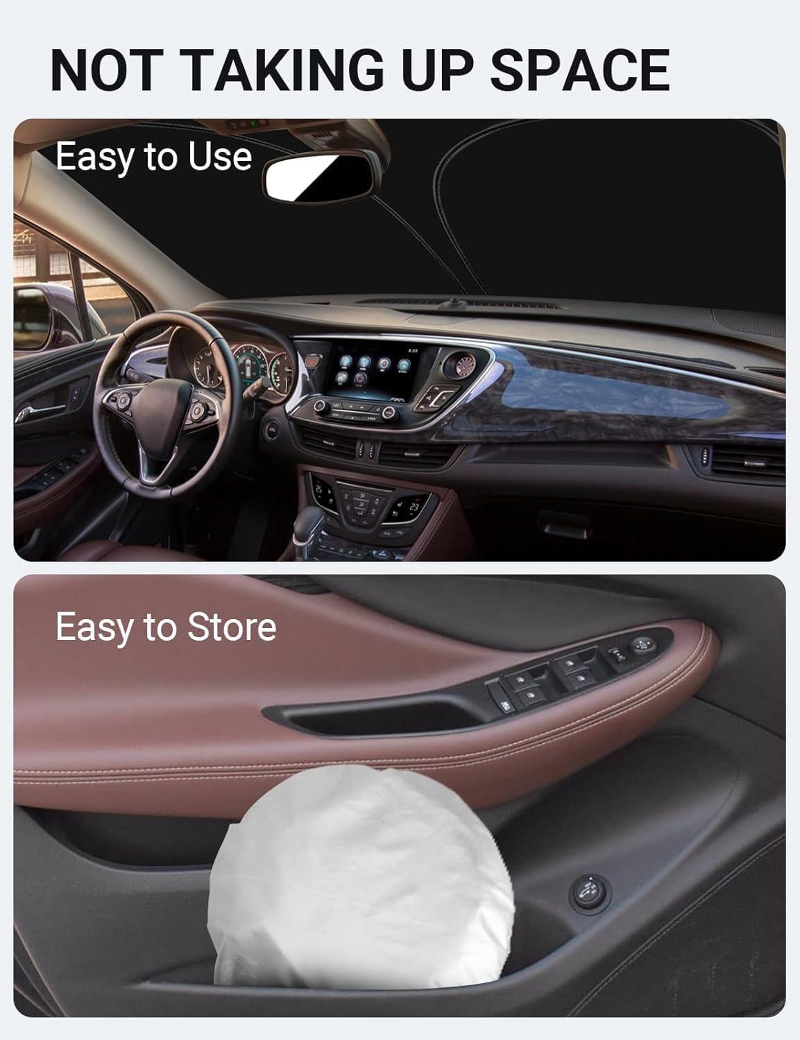 Easy to Use and Store: Unlike other products on the market, our windscreen sun visor is designed to be easy to use and store with its lightweight and collapsible material. The windscreen sunshade can be popped up and folded in seconds for everyday use and fits easily in your door pocket.