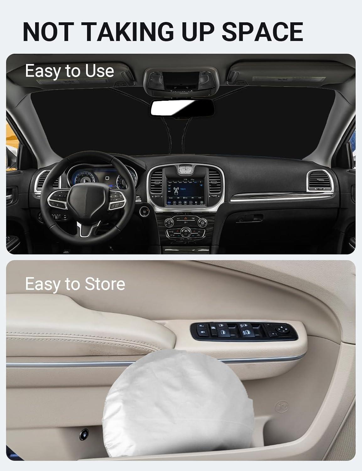Easy to Use and Store: Unlike other products on the market, our windscreen sun visor is designed to be easy to use and store with its lightweight and collapsible material. The windscreen sunshade can be popped up and folded in seconds for everyday use and fits easily in your door pocket.