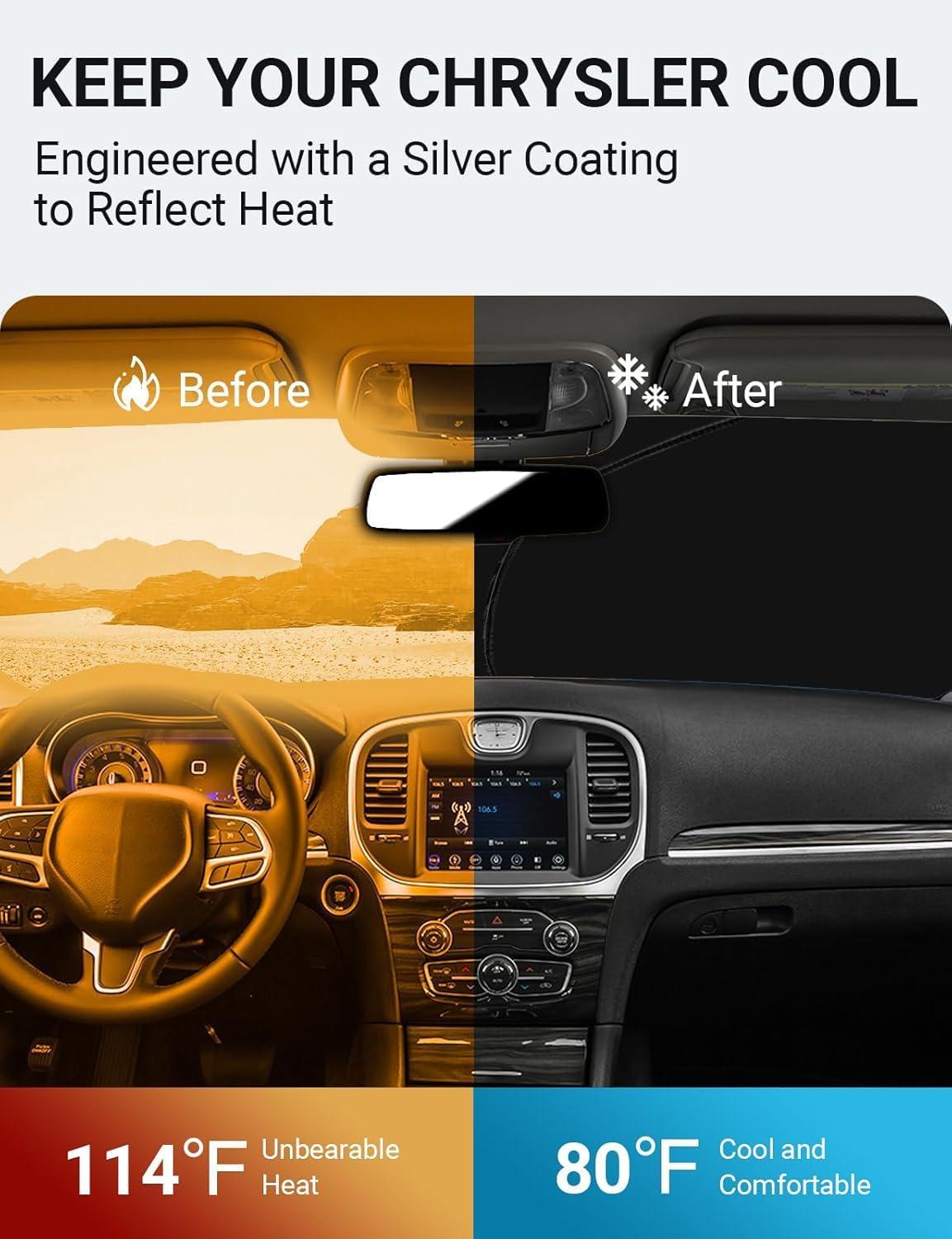 Proadsy Windshield Sun Shade for Nissan Pathfinder 2026 2025 2024 2023 2022 Foldable Front Sunshade Protector Sun Visor Blocks UV Rays Keep Car Cooler(Chrysler 300 300C 2011-2026)