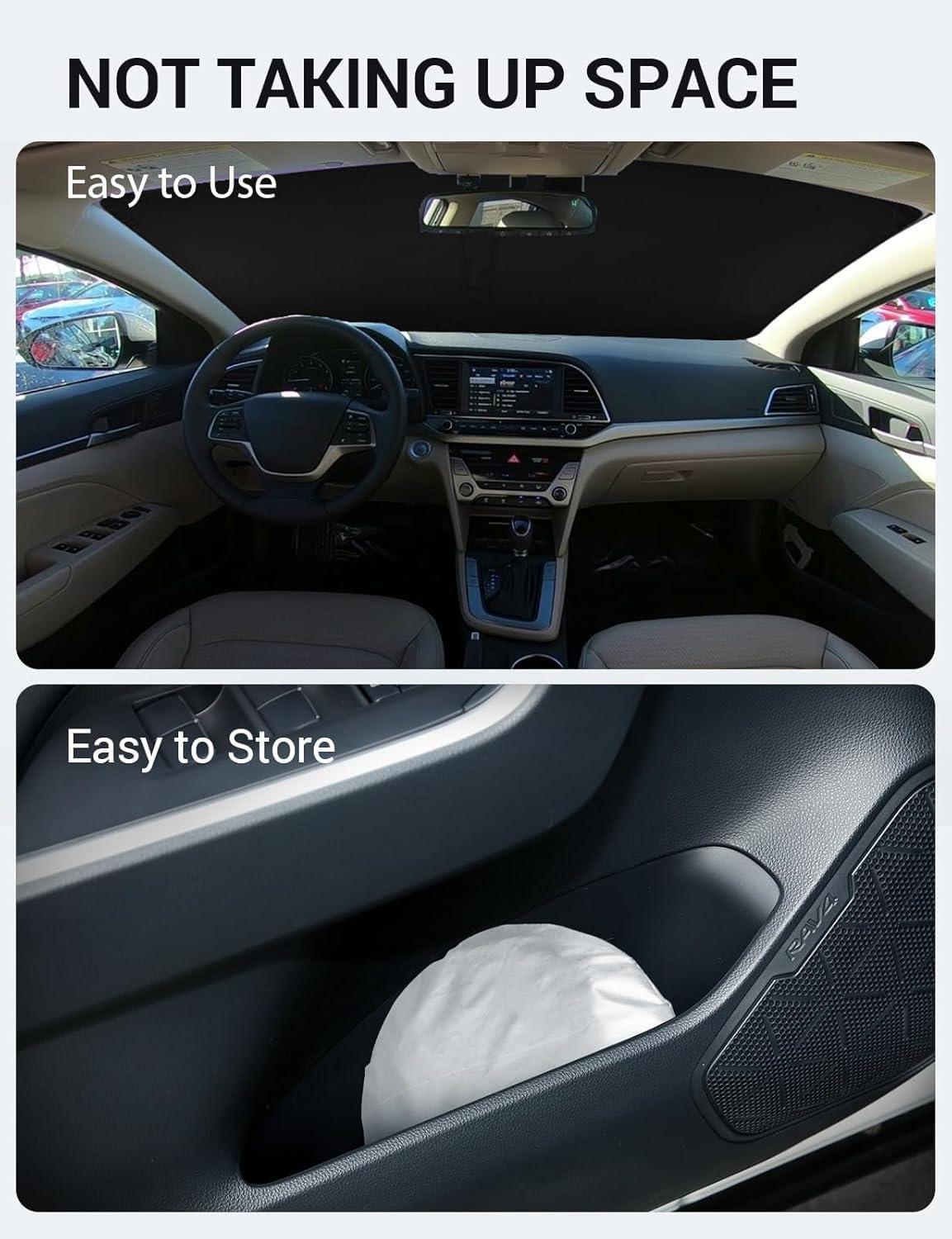 Easy to Use and Store: Unlike other products on the market, our windscreen sun visor is designed to be easy to use and store with its lightweight and collapsible material. The windscreen sunshade can be popped up and folded in seconds for everyday use and fits easily in your door pocket.