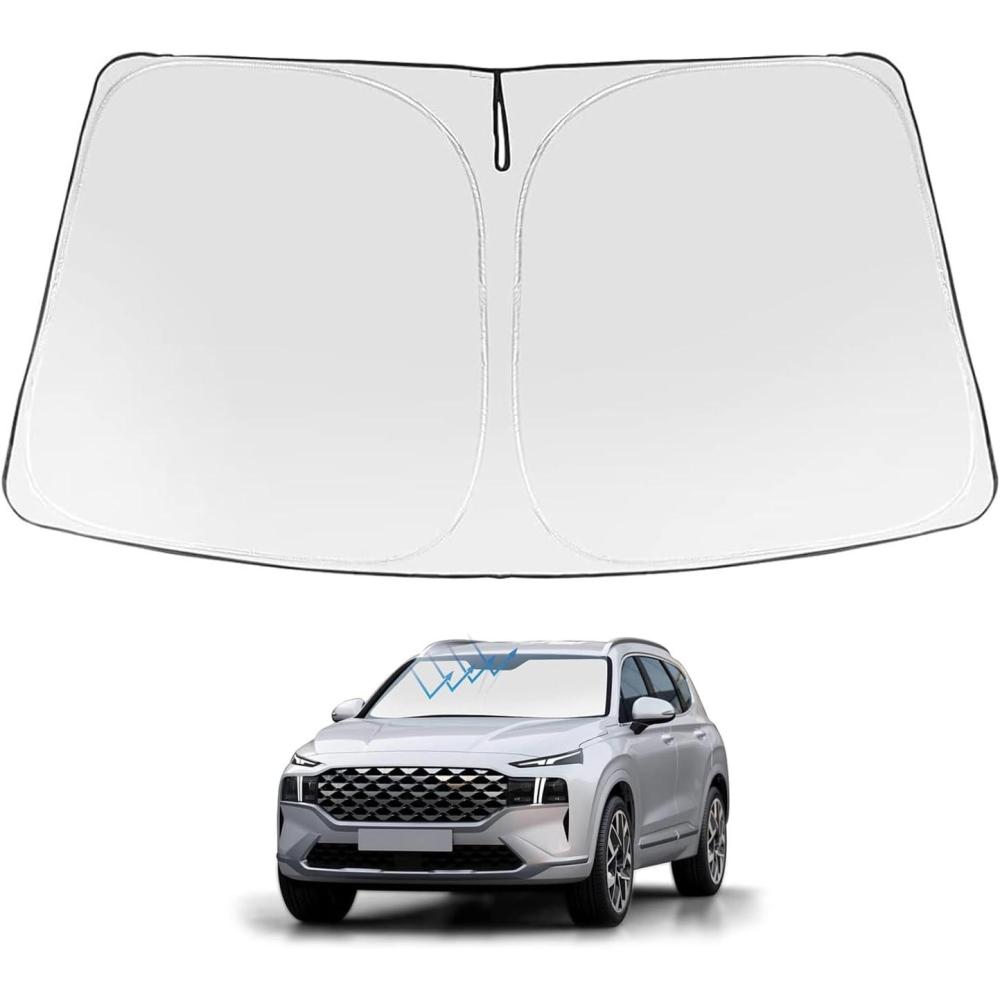 Proadsy Windshield Sun Shade for Nissan Pathfinder 2026 2025 2024 2023 2022 Foldable Front Sunshade Protector Sun Visor Blocks UV Rays Keep Car Cooler(Hyundai Santa 2019-2023)