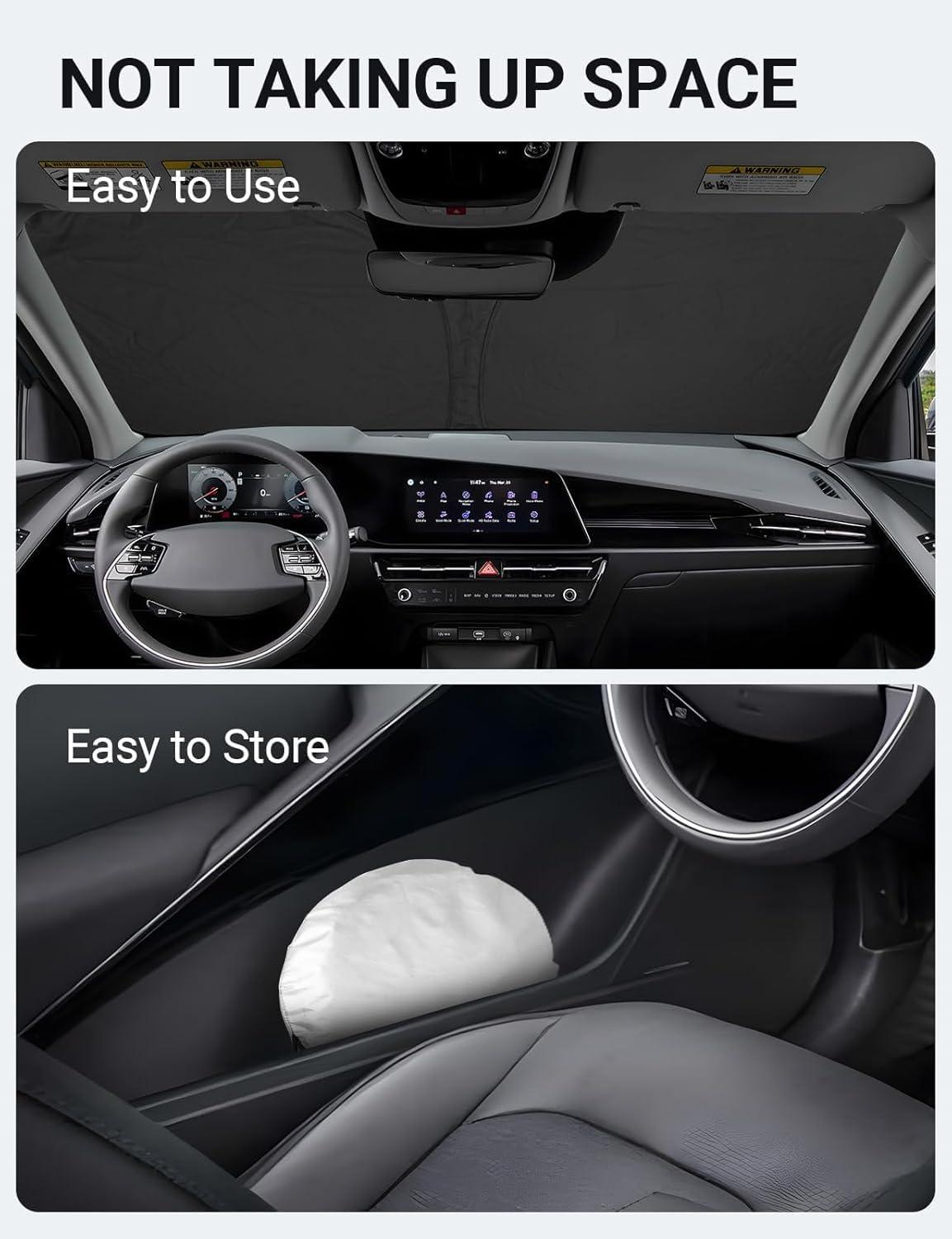 Easy to Use and Store: Unlike other products on the market, our windscreen sun visor is designed to be easy to use and store with its lightweight and collapsible material. The windscreen sunshade can be popped up and folded in seconds for everyday use and fits easily in your door pocket.