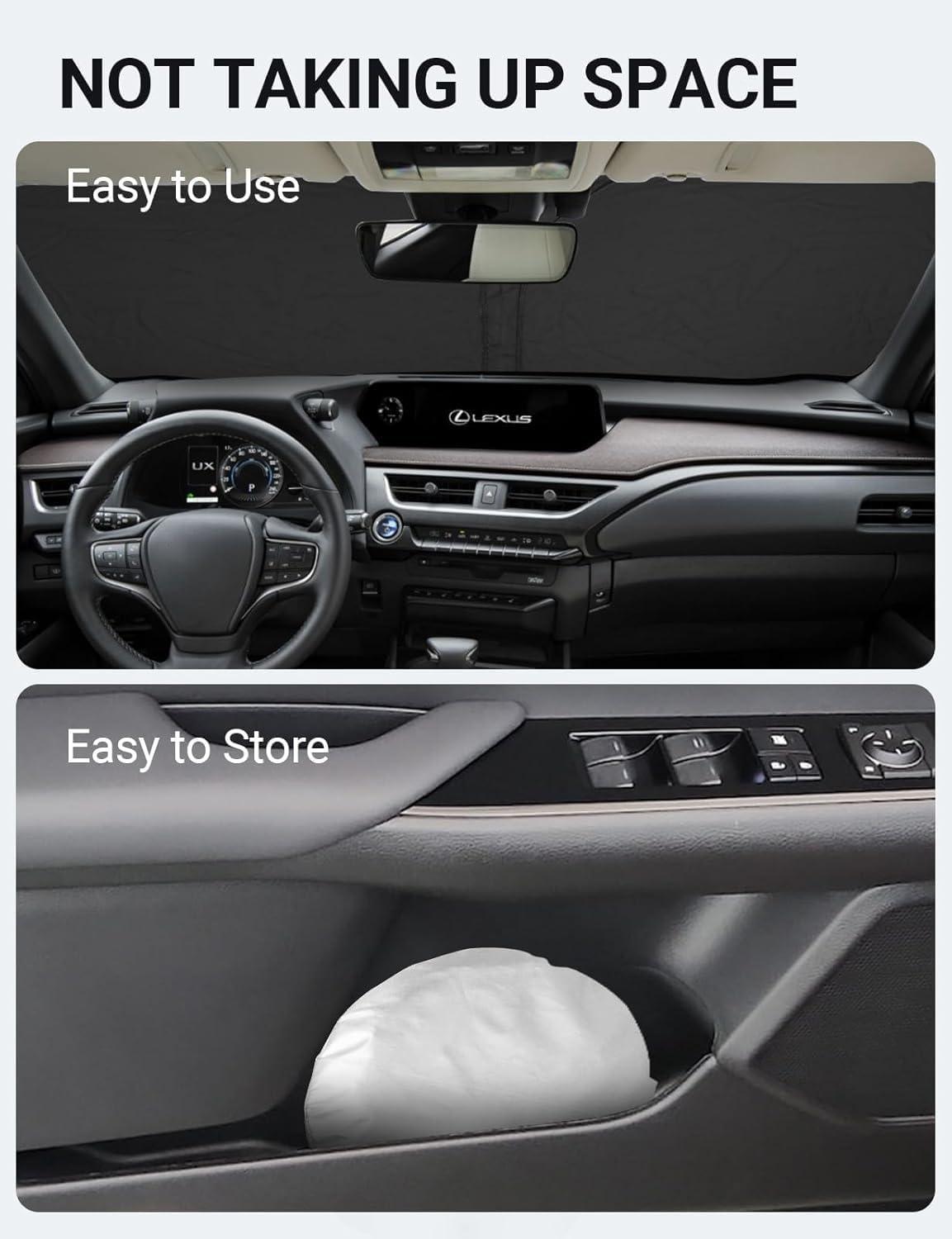 Easy to Use and Store: Unlike other products on the market, our windscreen sun visor is designed to be easy to use and store with its lightweight and collapsible material. The windscreen sunshade can be popped up and folded in seconds for everyday use and fits easily in your door pocket.