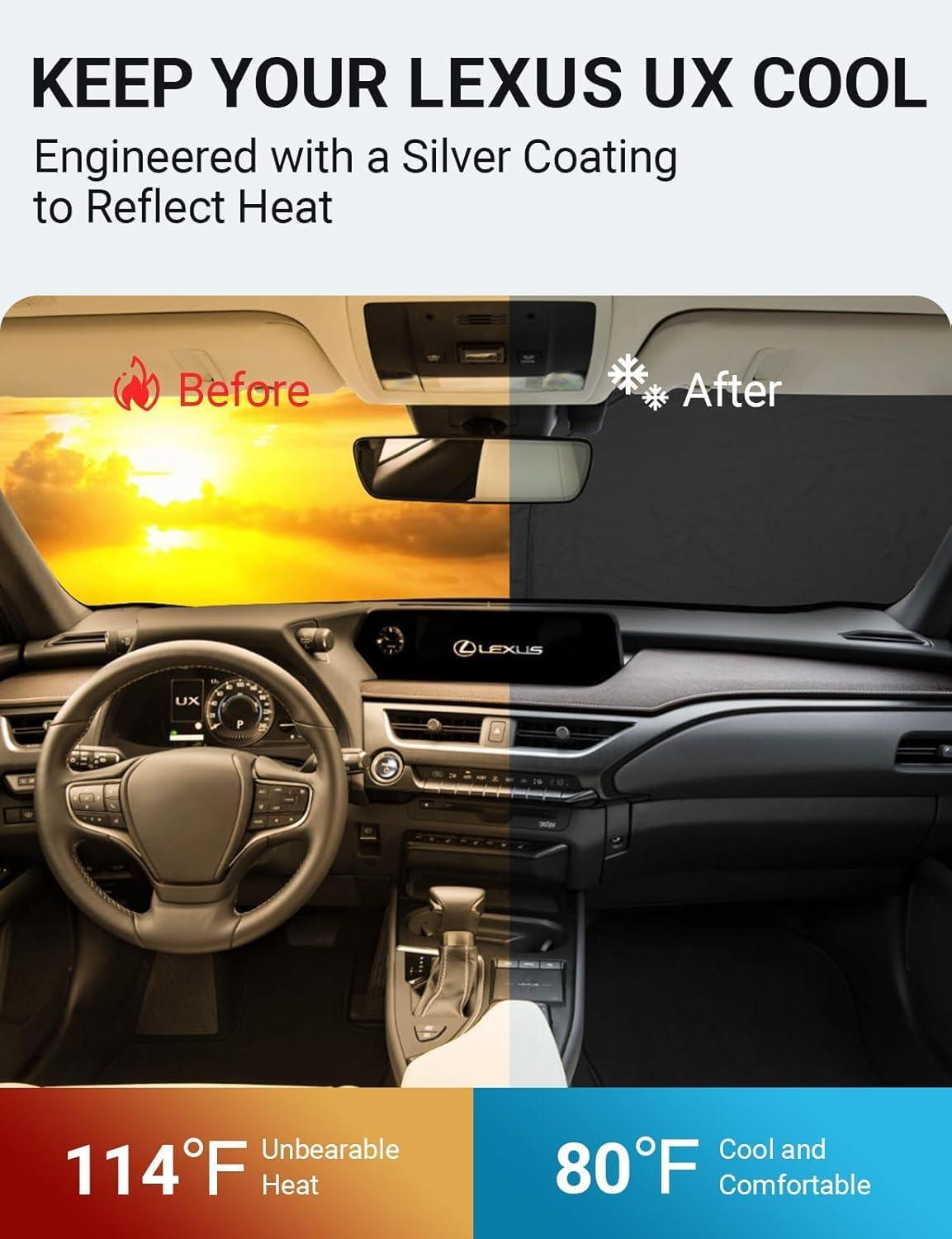 Proadsy Windshield Sun Shade for Nissan Pathfinder 2026 2025 2024 2023 2022 Foldable Front Sunshade Protector Sun Visor Blocks UV Rays Keep Car Cooler(Lexus UX 2019-2026)