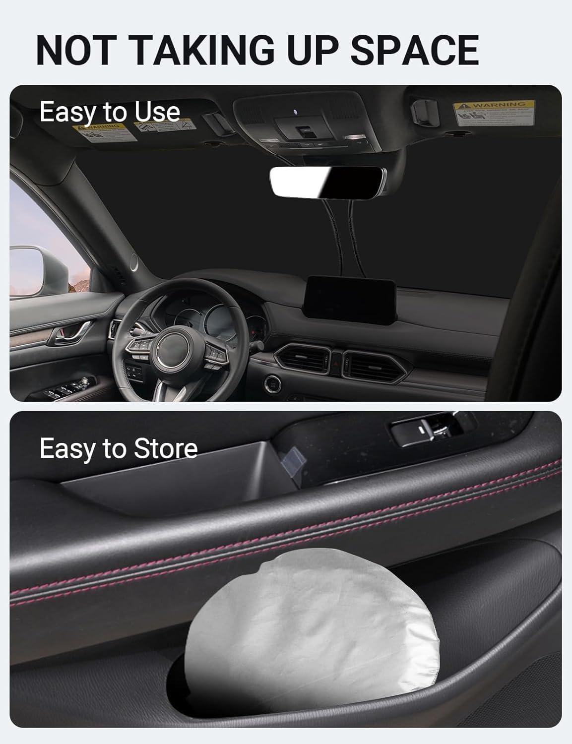 Easy to Use and Store: Unlike other products on the market, our windscreen sun visor is designed to be easy to use and store with its lightweight and collapsible material. The windscreen sunshade can be popped up and folded in seconds for everyday use and fits easily in your door pocket.