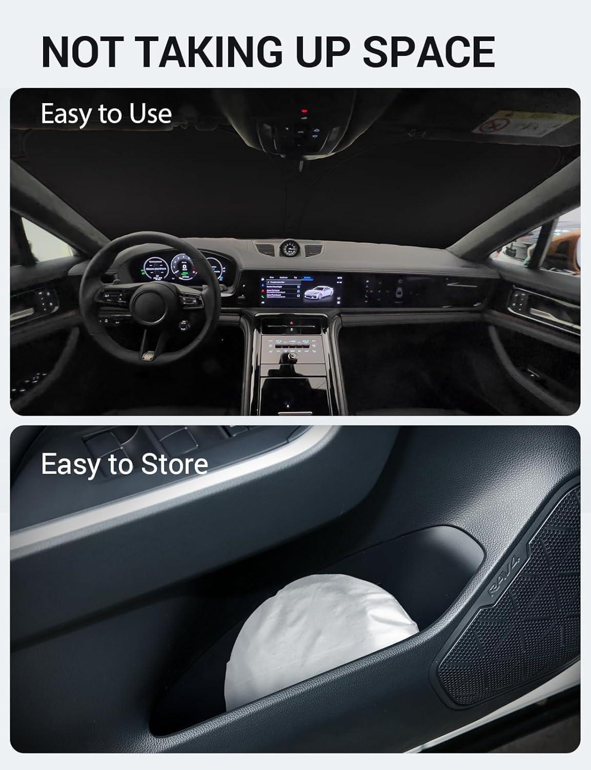 Easy to Use and Store: Unlike other products on the market, our windscreen sun visor is designed to be easy to use and store with its lightweight and collapsible material. The windscreen sunshade can be popped up and folded in seconds for everyday use and fits easily in your door pocket.