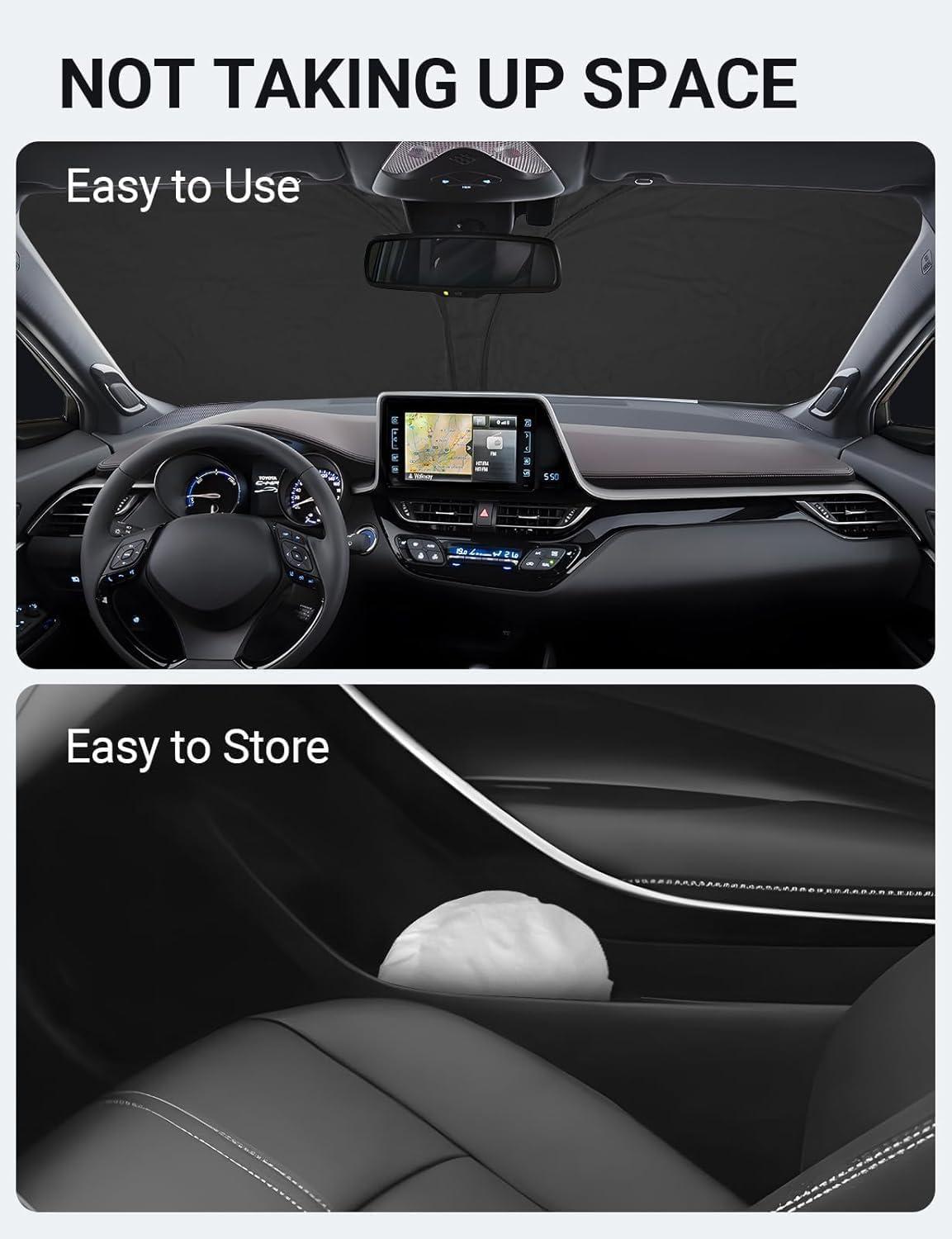 Easy to Use and Store: Unlike other products on the market, our windscreen sun visor is designed to be easy to use and store with its lightweight and collapsible material. The windscreen sunshade can be popped up and folded in seconds for everyday use and fits easily in your door pocket.