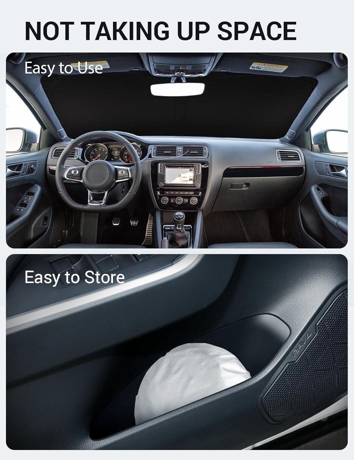 Easy to Use and Store: Unlike other products on the market, our windscreen sun visor is designed to be easy to use and store with its lightweight and collapsible material. The windscreen sunshade can be popped up and folded in seconds for everyday use and fits easily in your door pocket.