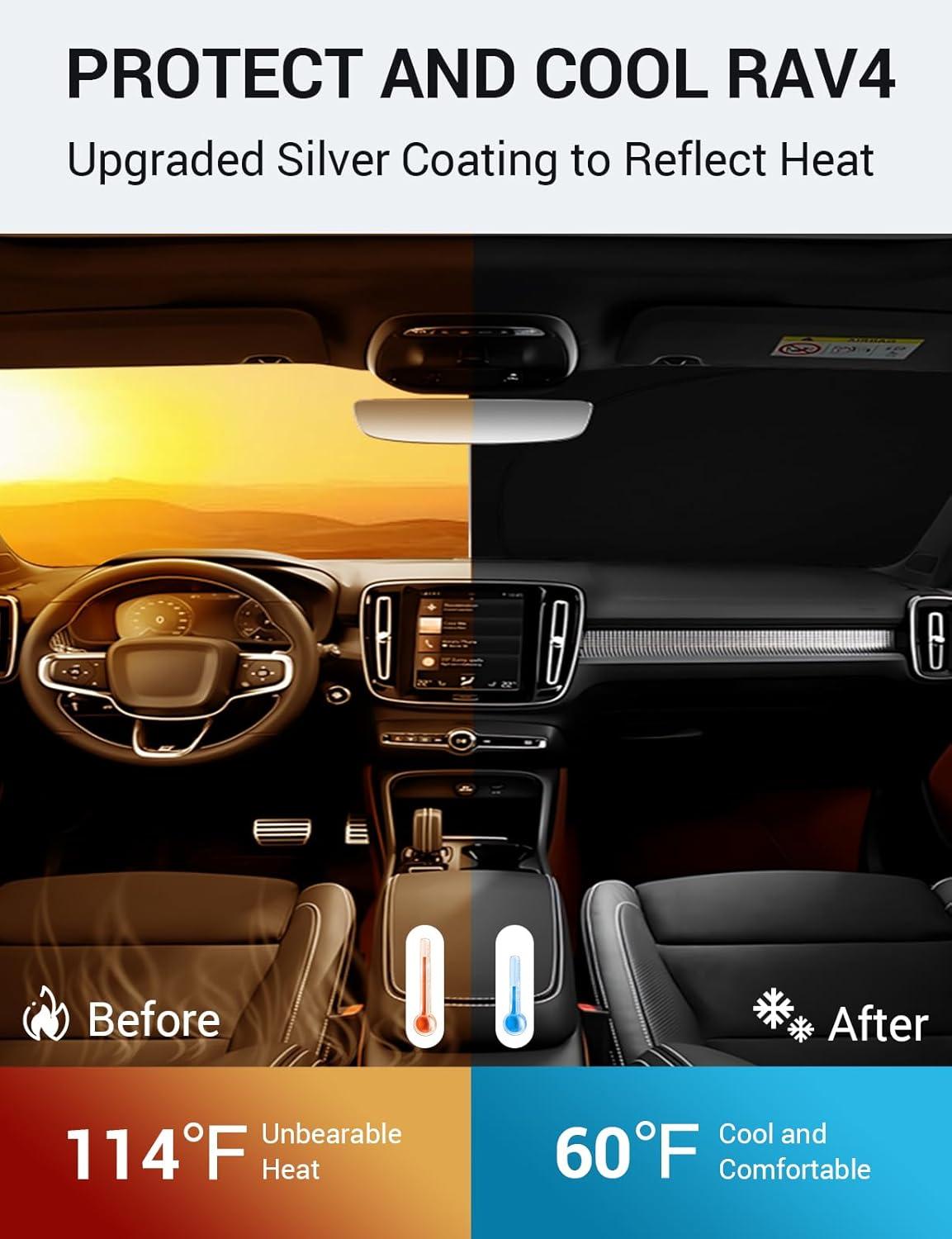 Keep Car Cooler: Engineered with a silver coating, our sun visor protector reflects heat, reducing heat buildup by up to 40°F and blocking 99% of harmful UV rays. It helps keep your car cooler and prevents leather seats from cracking and fading.
