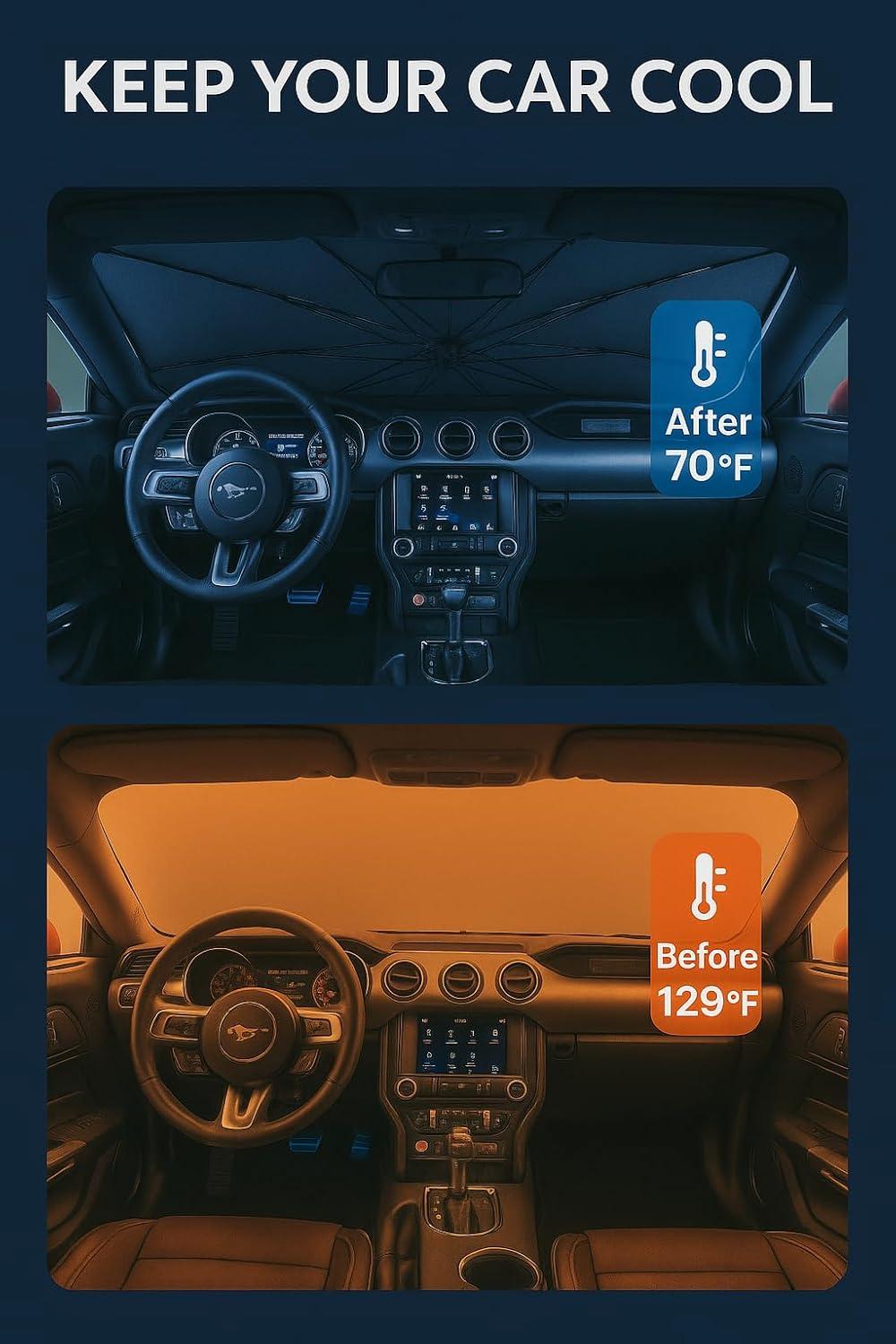 Proadsy Windshield Sun Shade Umbrella for Hyundai Tucson 2022-2025 2026 Foldable Car Umbrella Sunshade with Soft TPU Handle Spring Structure Crystal Cooling Material Protect Car from Rays & Heat(Ford Mustang 2015-2023)