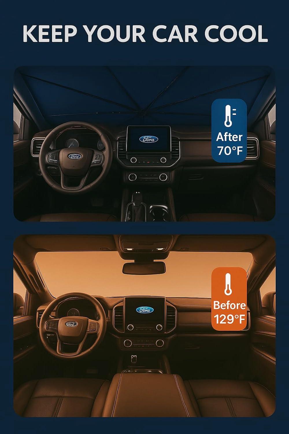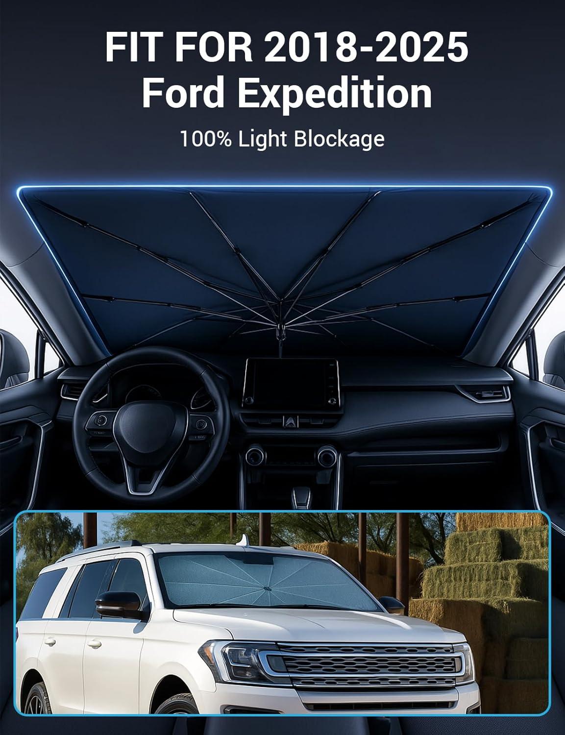 Proadsy Windshield Sun Shade Umbrella for Hyundai Tucson 2022-2025 2026 Foldable Car Umbrella Sunshade with Soft TPU Handle Spring Structure Crystal Cooling Material Protect Car from Rays & Heat(Ford Expedition 2018-2025)