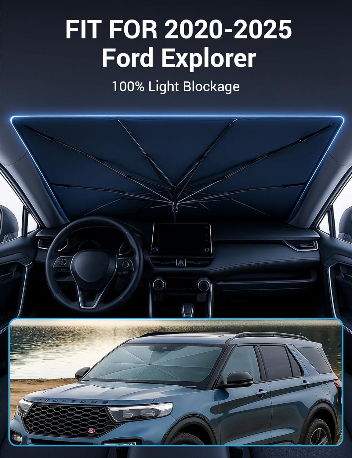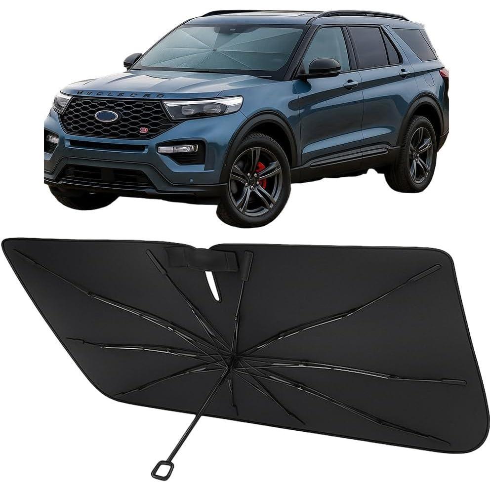 Proadsy Windshield Sun Shade Umbrella for Hyundai Tucson 2022-2025 2026 Foldable Car Umbrella Sunshade with Soft TPU Handle Spring Structure Crystal Cooling Material Protect Car from Rays & Heat(Ford Explorer 2020-2025)