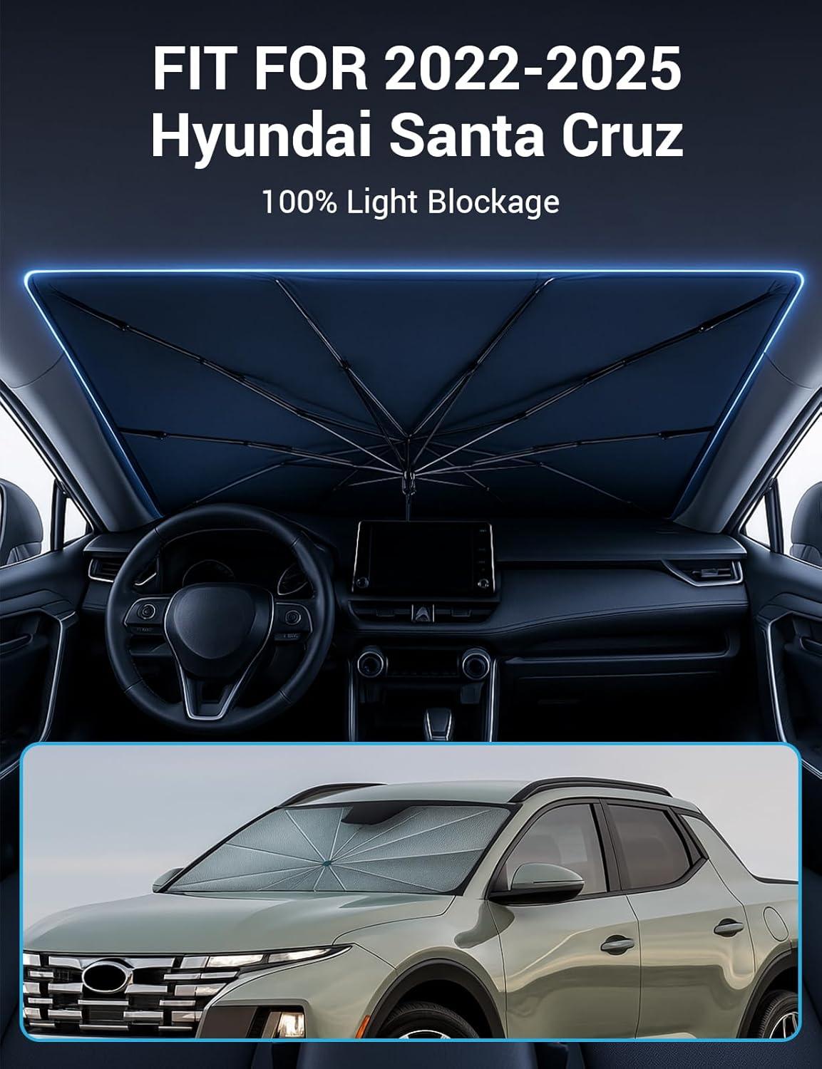 Proadsy Windshield Sun Shade Umbrella for Hyundai Tucson 2022-2025 2026 Foldable Car Umbrella Sunshade with Soft TPU Handle Spring Structure Crystal Cooling Material Protect Car from Rays & Heat(Hyundai Santa Cruz 2022-2025)