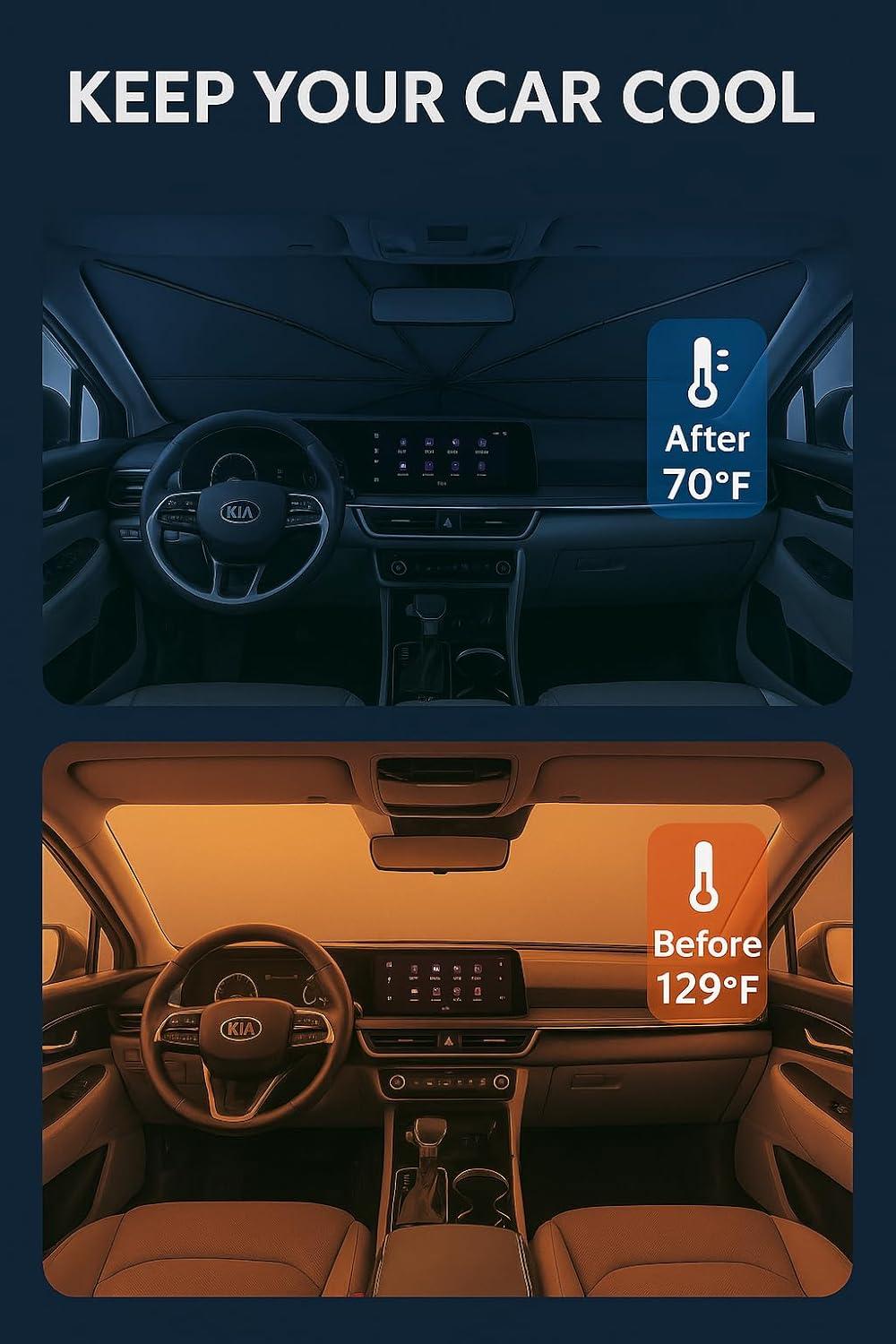 Proadsy Windshield Sun Shade Umbrella for Hyundai Tucson 2022-2025 2026 Foldable Car Umbrella Sunshade with Soft TPU Handle Spring Structure Crystal Cooling Material Protect Car from Rays & Heat(Kia K5 2019-2025 2026)