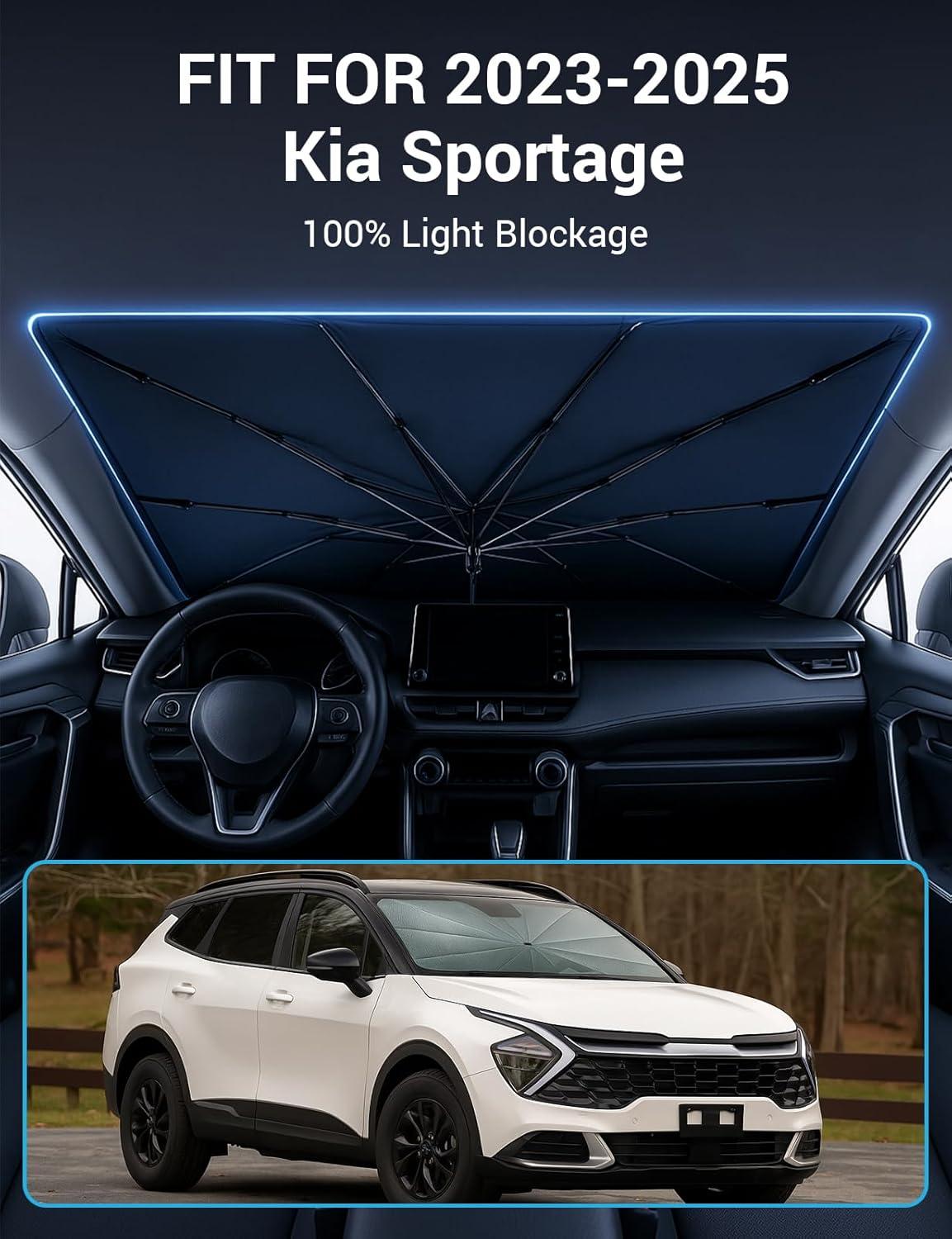 Proadsy Windshield Sun Shade Umbrella for Hyundai Tucson 2022-2025 2026 Foldable Car Umbrella Sunshade with Soft TPU Handle Spring Structure Crystal Cooling Material Protect Car from Rays & Heat(Kia Sportage NQ5 2023-2025)