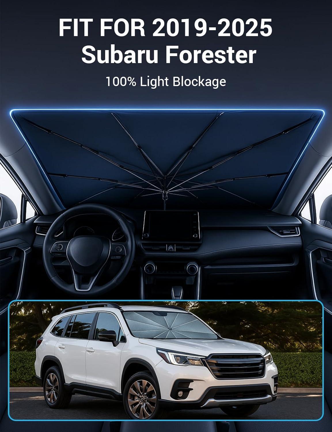 Proadsy Windshield Sun Shade Umbrella for Mazda CX-5 2017-2025 Foldable Car Umbrella Sunshade with Soft TPU Handle Spring Structure Crystal Cooling Material Protect Car from Rays & Heat(Subaru Forester 2019-2025)